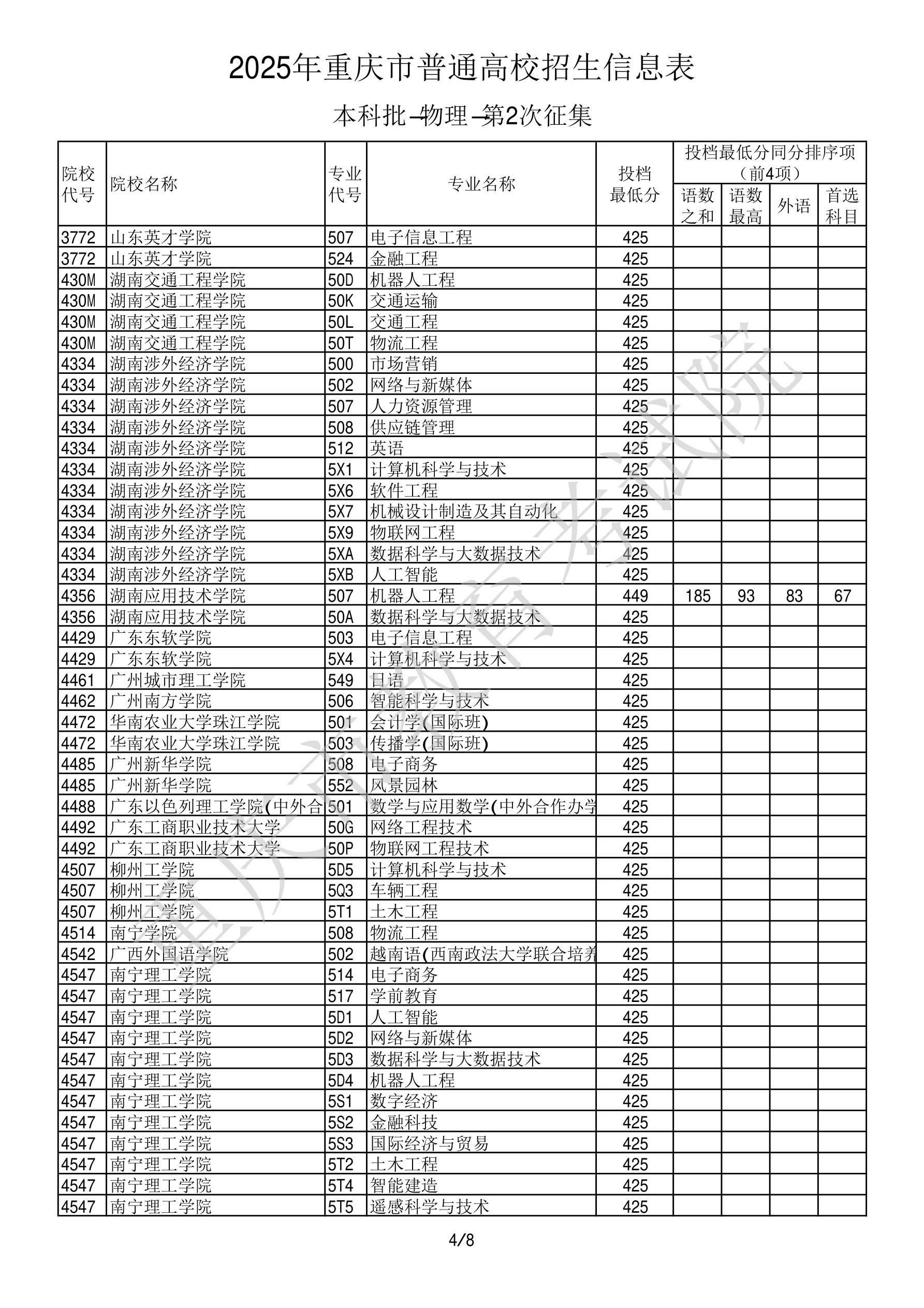 2025年重庆高考普通类本科批 柳州工学院 的 计算机科学与技术 专业录取分数溯源信息