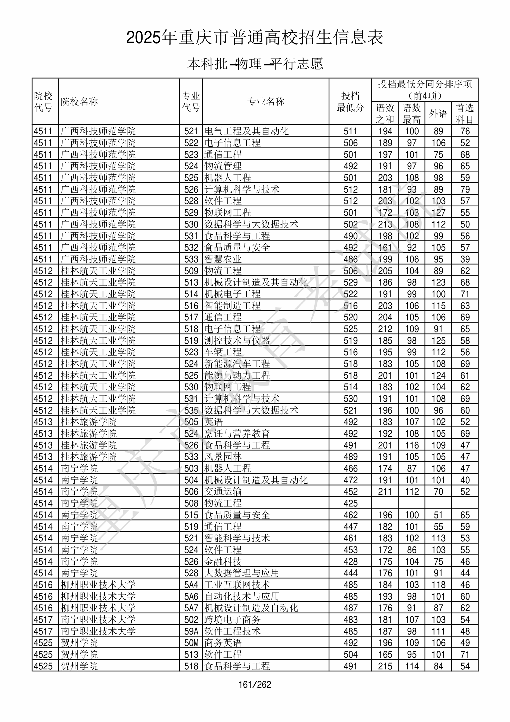 2025年重庆高考普通类本科批 南宁学院 的 交通运输 专业录取分数溯源信息