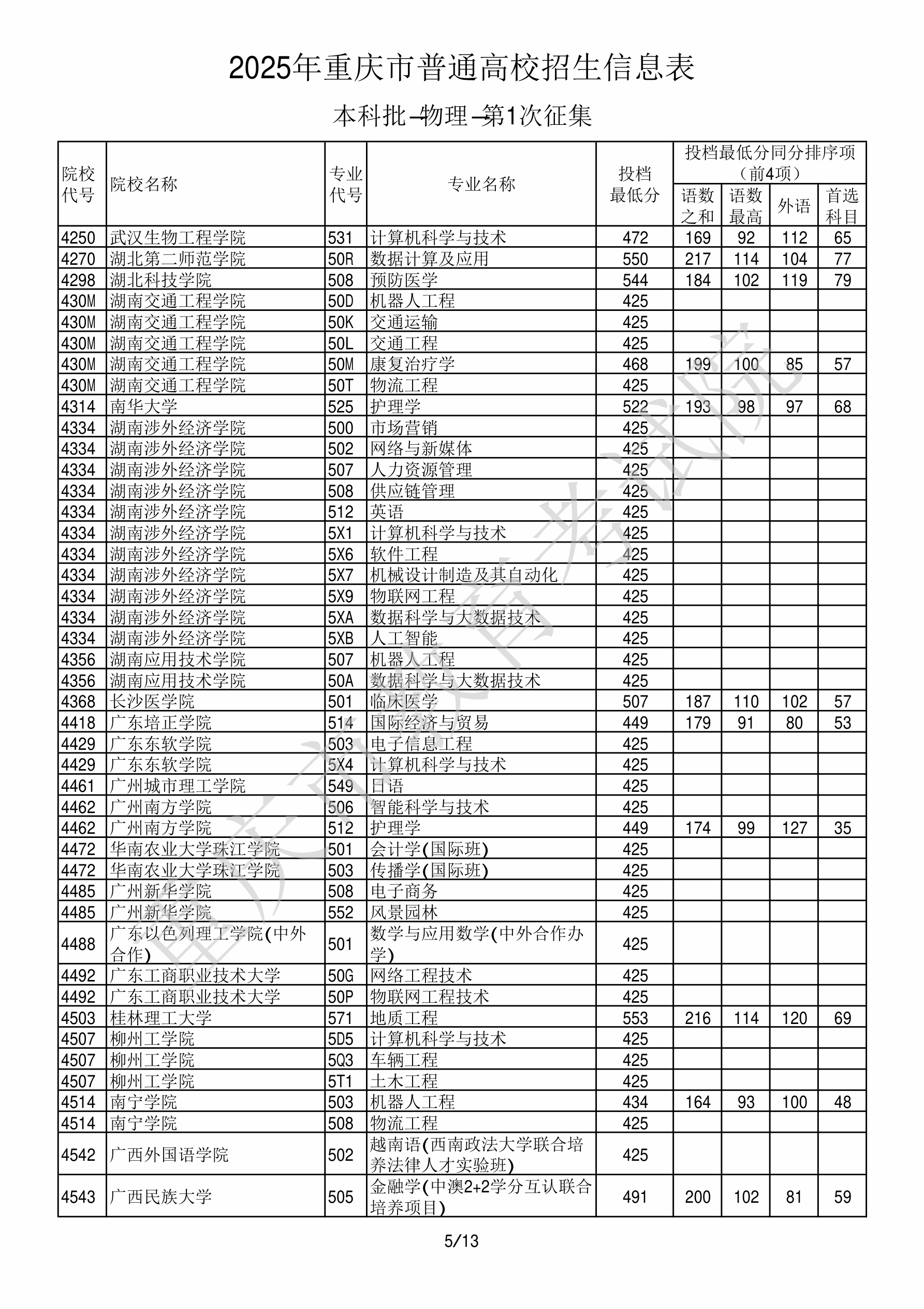 | 4543 | 广西民族大学 | 505 | 金融学(中澳2+2学分互认联合培养项目) | 477 | 76161 | 本科 | 物理 ,再选: 不限 | 1,2 |