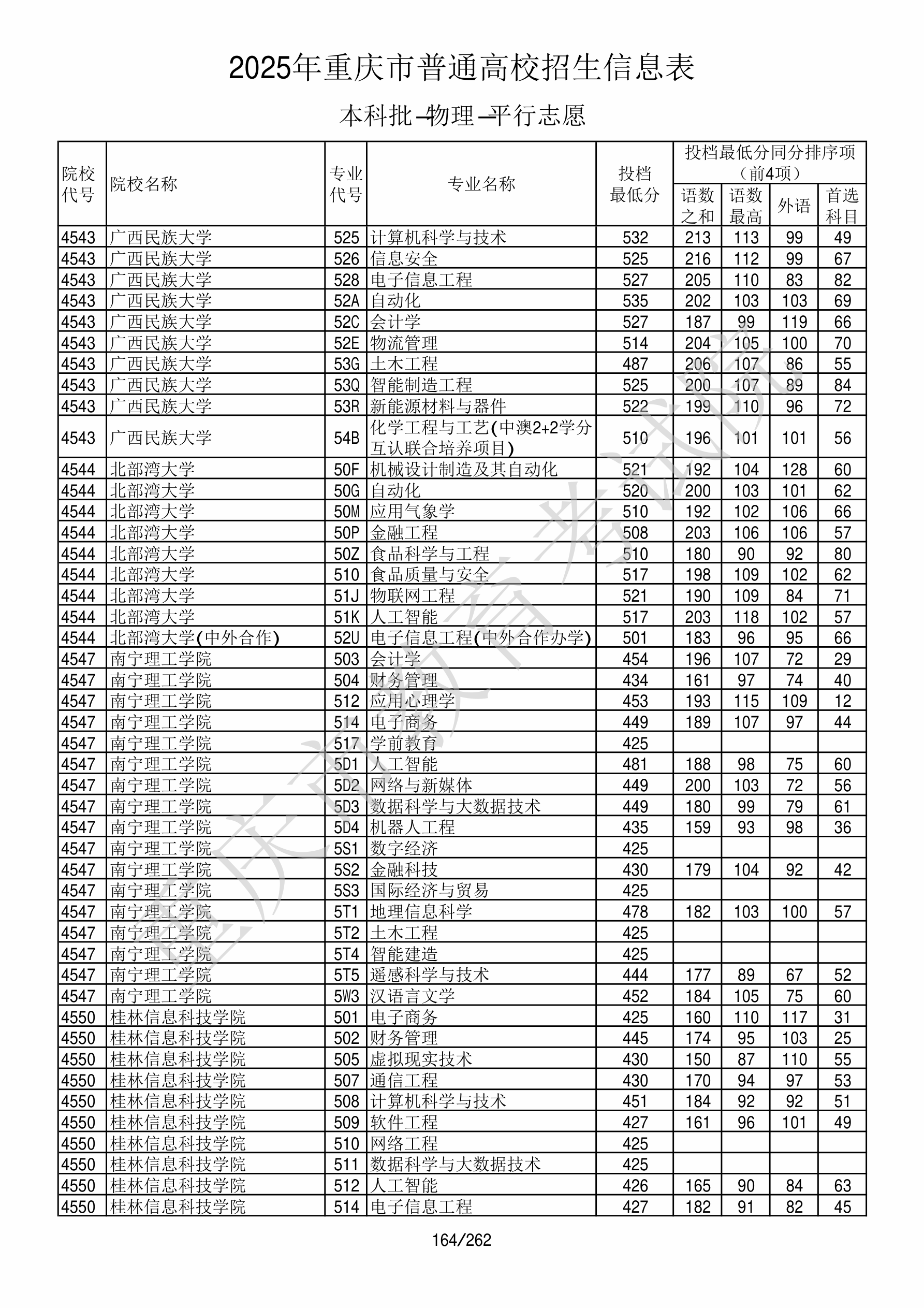 2025年重庆高考普通类本科批 南宁理工学院 的 学前教育 专业录取分数溯源信息