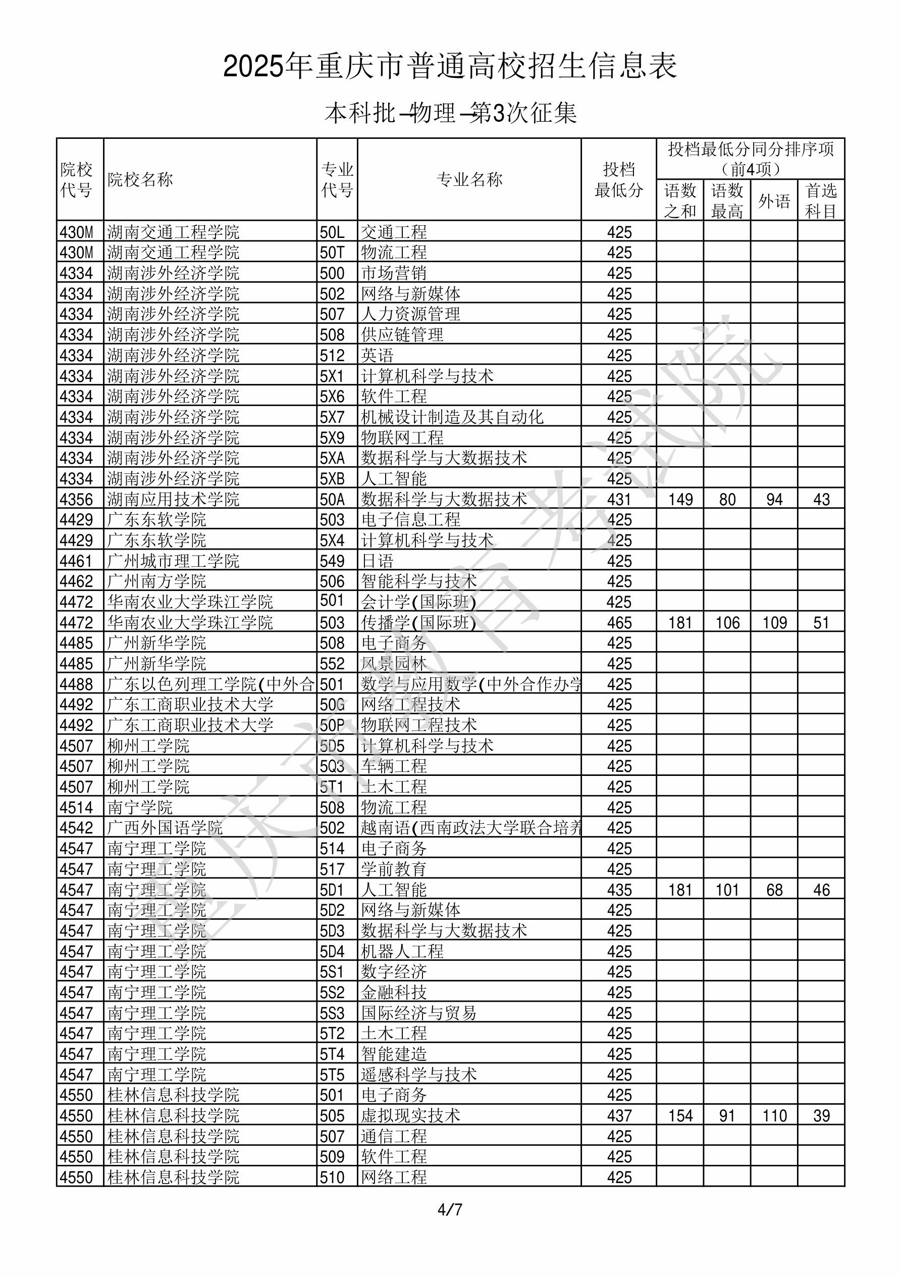 | 4547 | 南宁理工学院 | 517 | 学前教育 | 420 | 105425 | 本科 | 物理 ,再选: 不限 | 1,2,3,4,5 |
