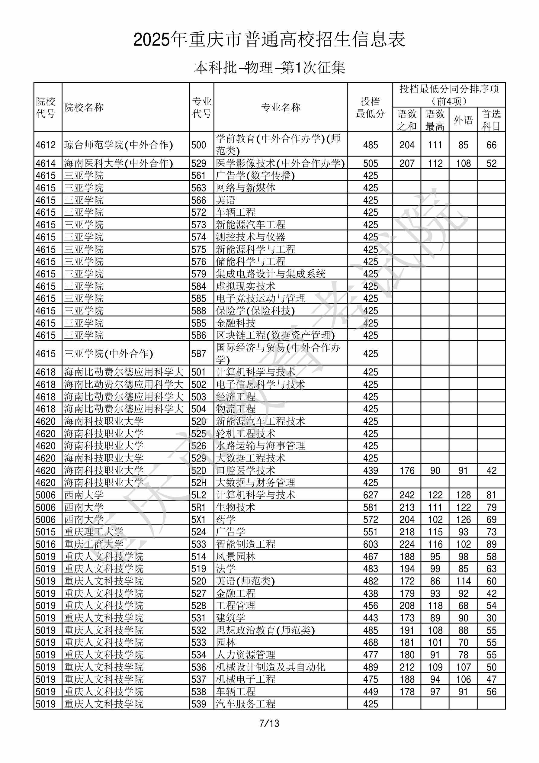 2025年重庆高考普通类本科批 海南医科大学 的 医学影像技术 专业录取分数溯源信息