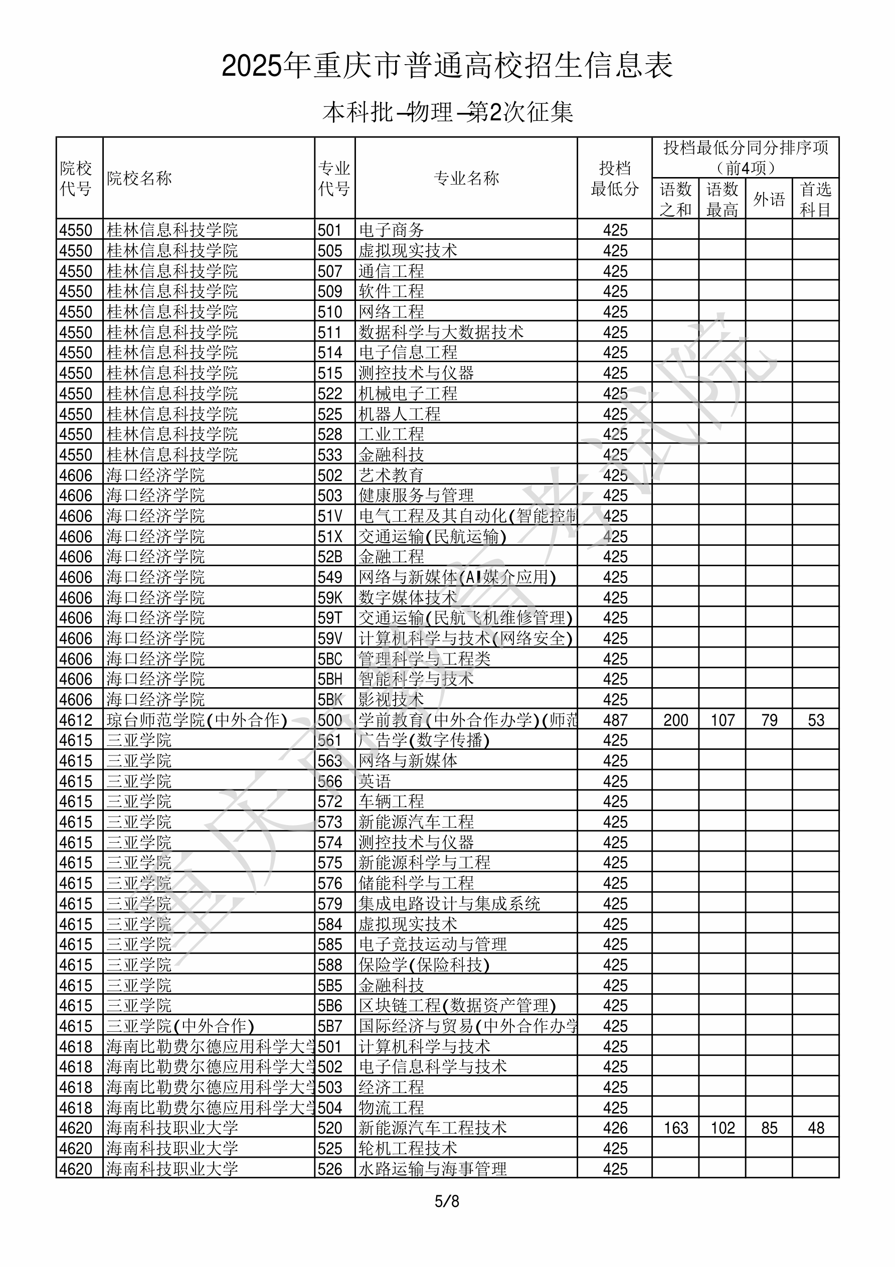 2025年重庆高考普通类本科批 海南比勒费尔德应用科学大学 的 计算机科学与技术 专业录取分数溯源信息