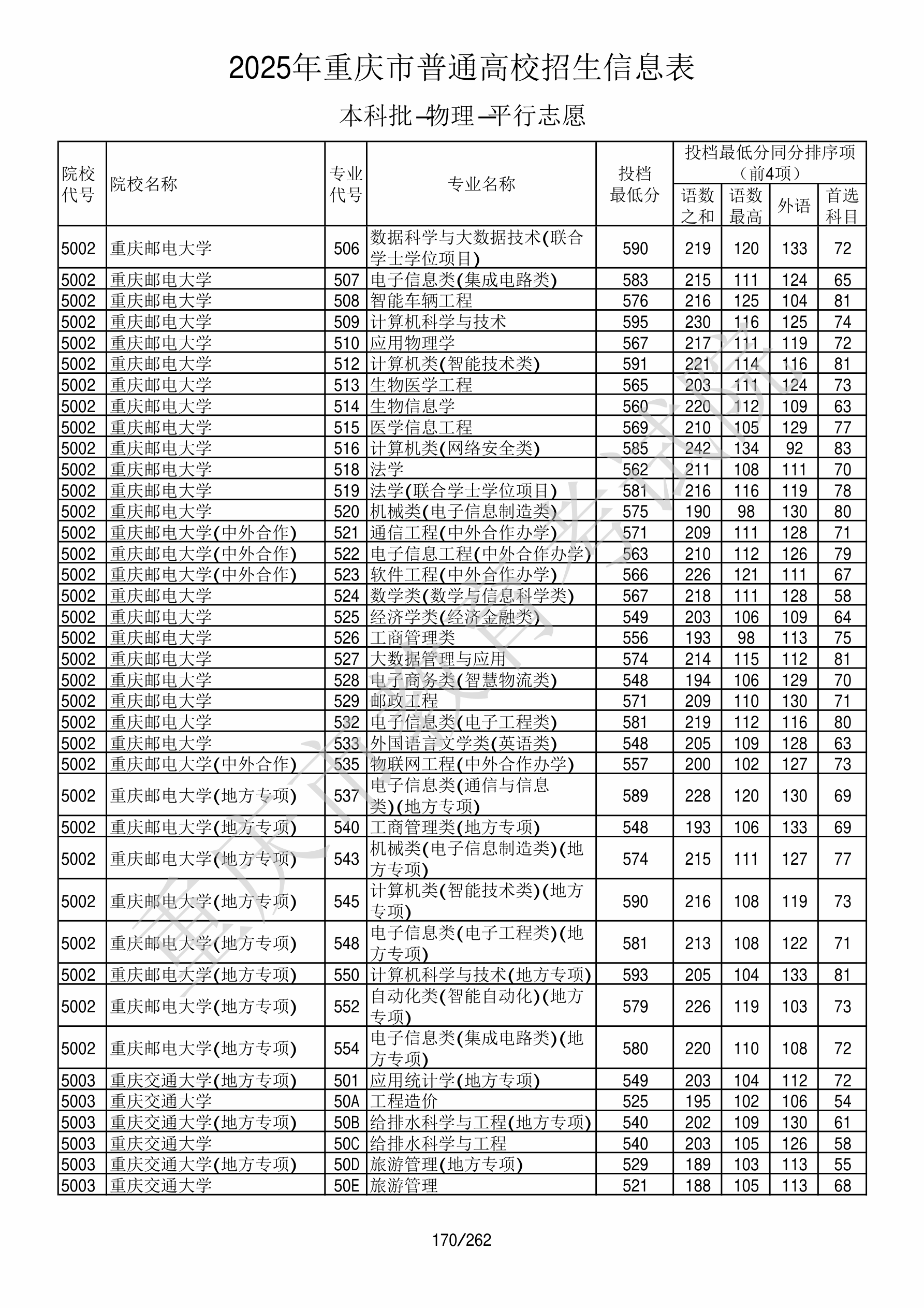 2025年重庆高考普通类本科批 重庆交通大学 的 旅游管理 专业录取分数溯源信息