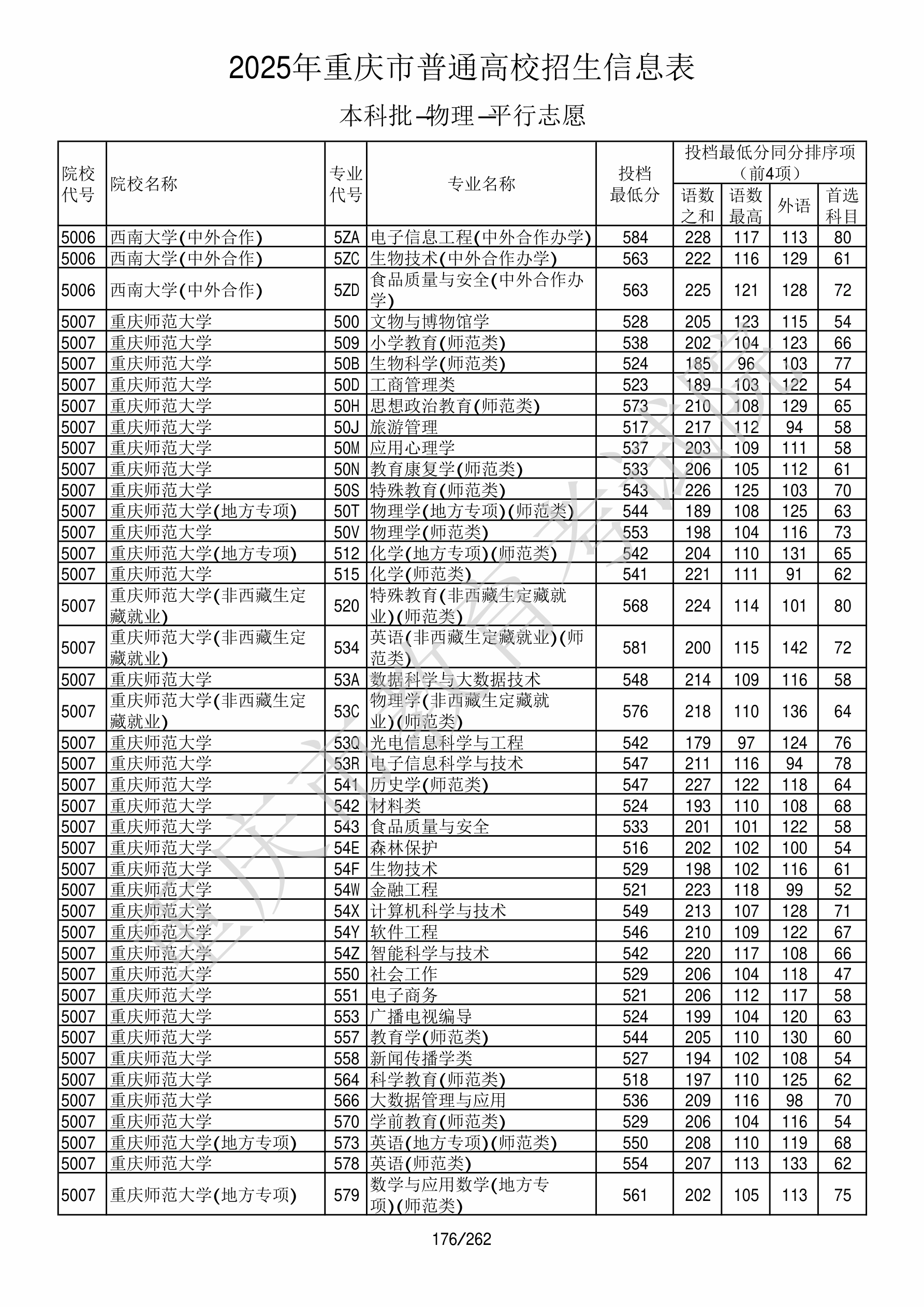2025年重庆高考普通类本科批 重庆师范大学 的 化学 专业录取分数溯源信息