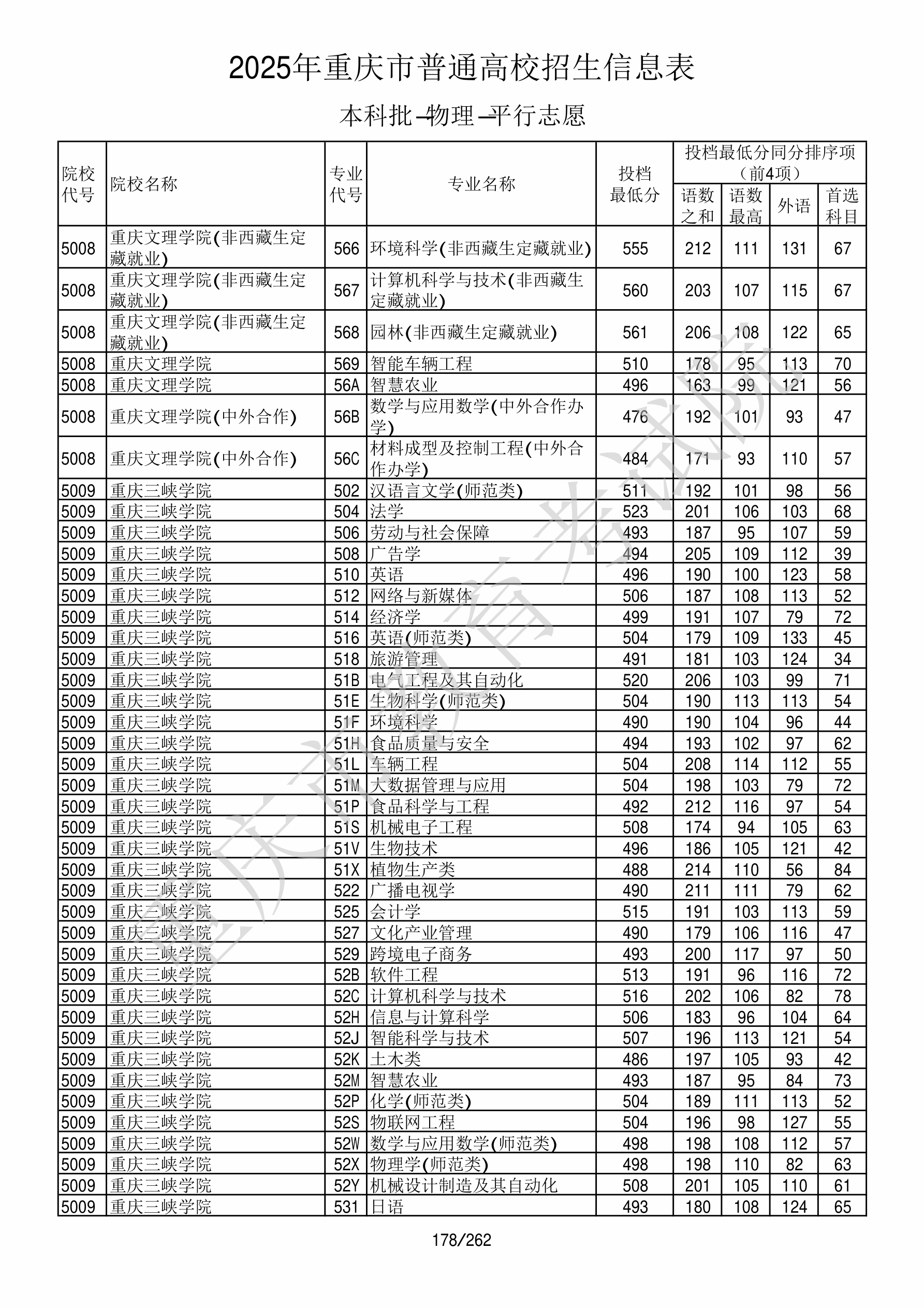 | 院校代码 | 院校名称 | 专业代码 | 专业名称 | 最低分数 | 最低位次 | 专业层次 | 限考科目 | 投档 |