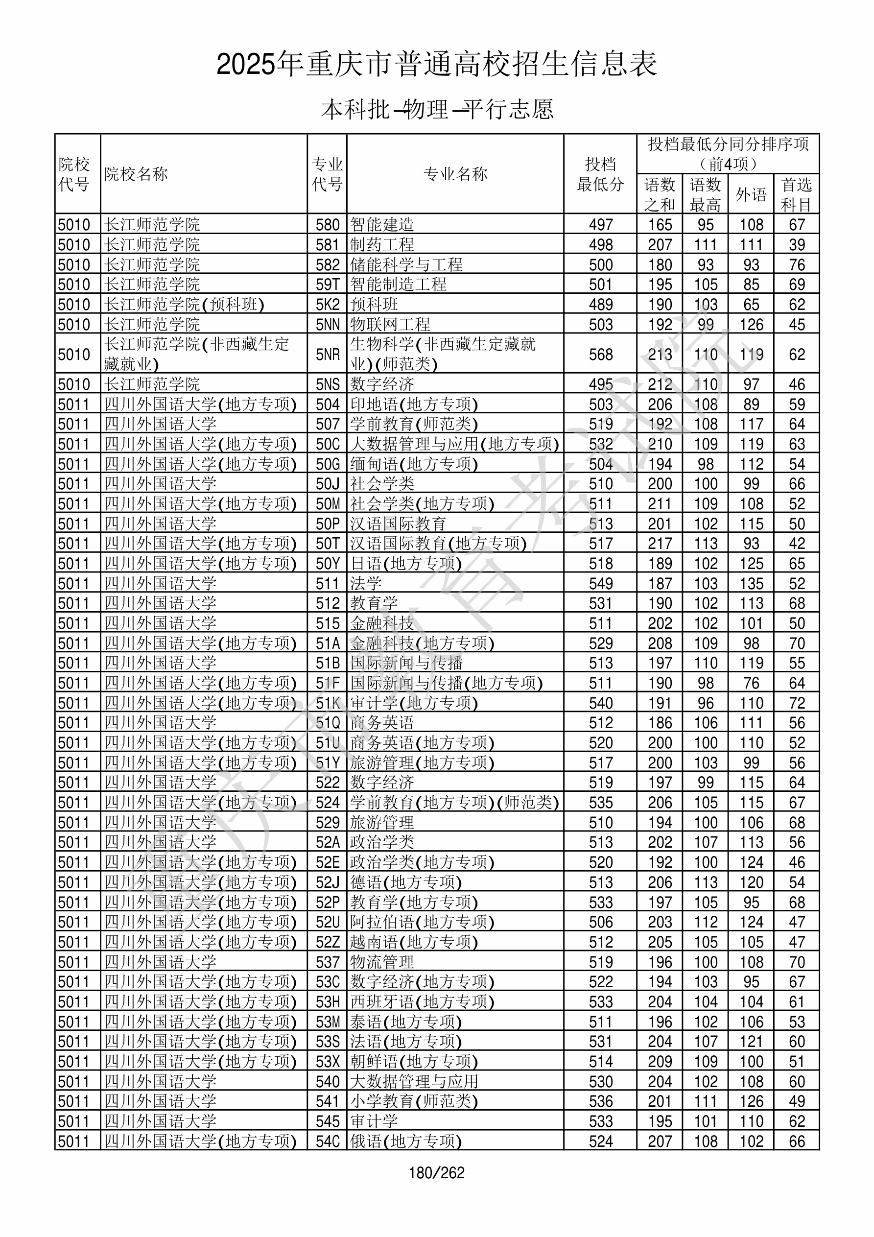 2025年重庆高考普通类本科批 四川外国语大学 的 数字经济 专业录取分数溯源信息