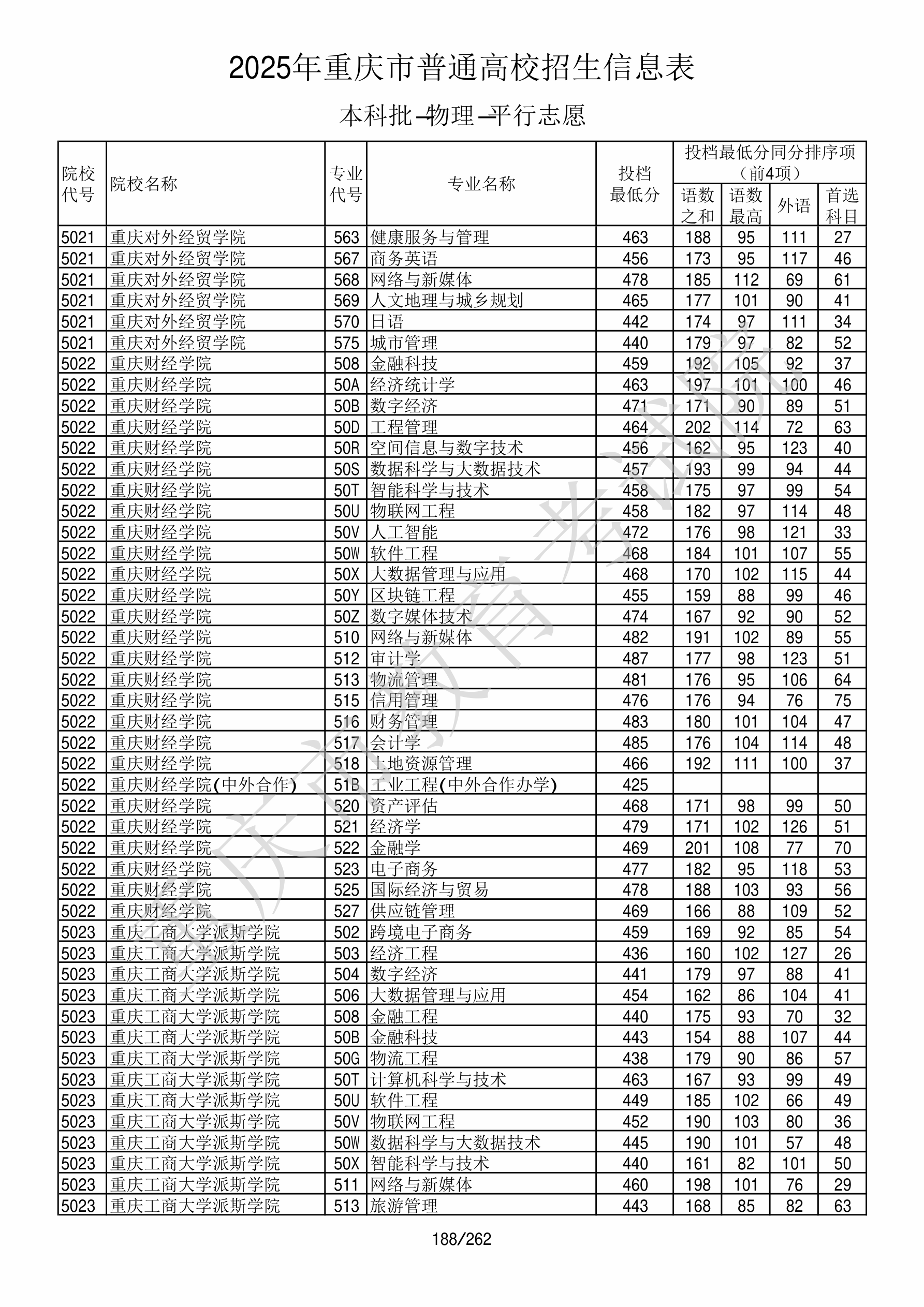 | 5022 | 重庆财经学院 | 50S | 数据科学与大数据技术 | 457 | 87578 | 本科 | 物理 ,再选: 化学 | 1,2 |