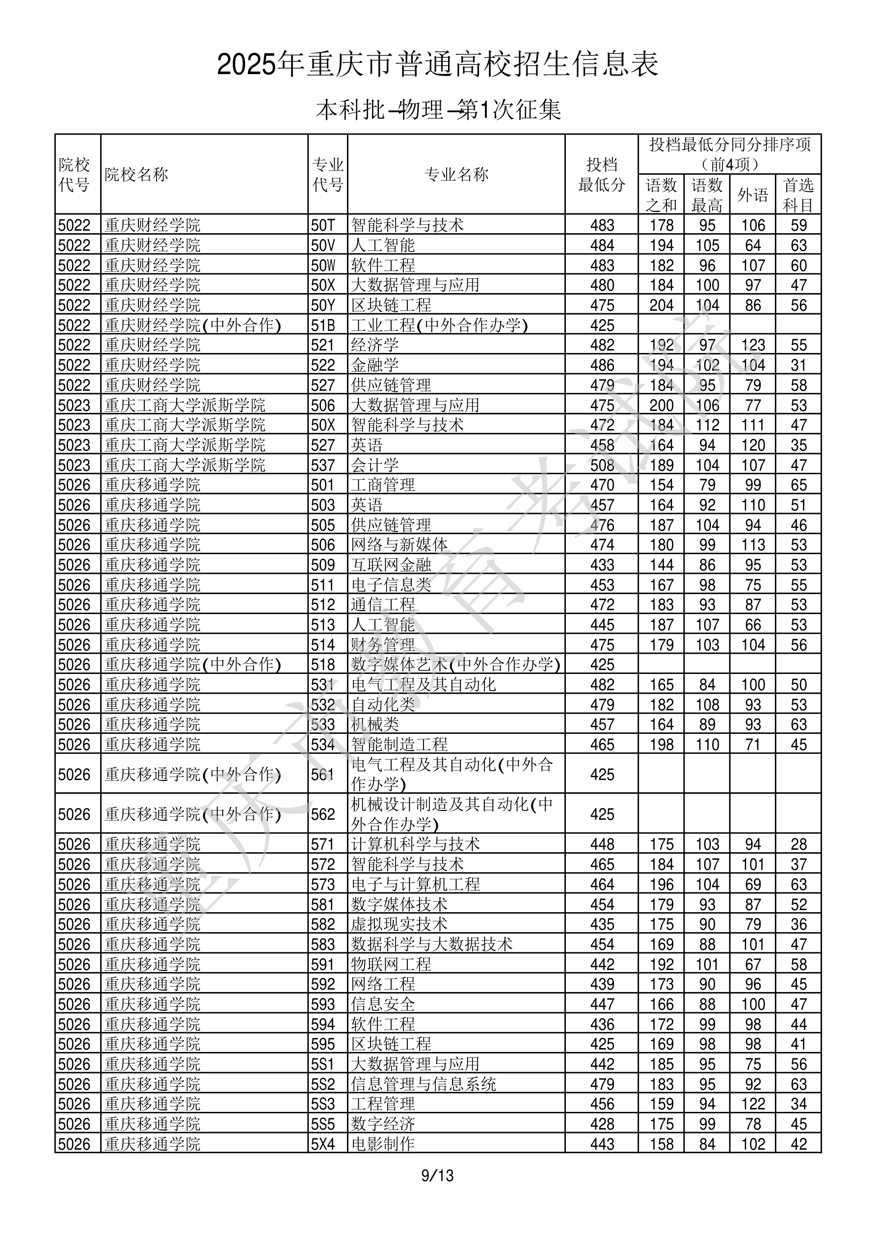 2025年重庆高考普通类本科批 重庆财经学院 的 经济学 专业录取分数溯源信息