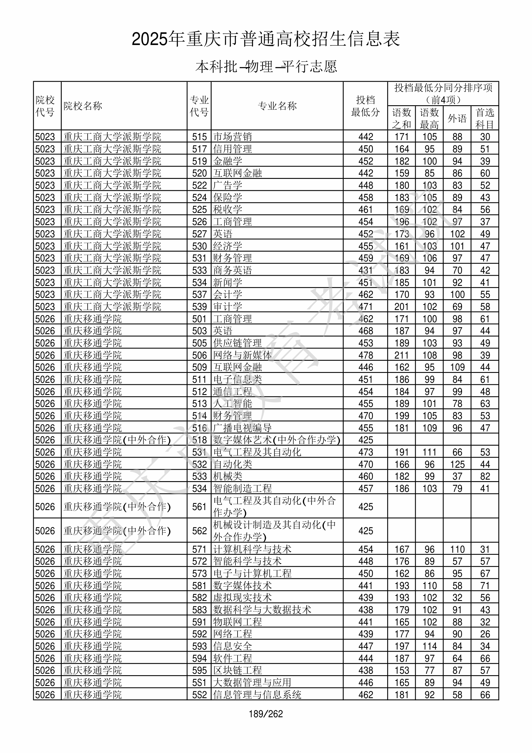 | 院校代码 | 院校名称 | 专业代码 | 专业名称 | 最低分数 | 最低位次 | 专业层次 | 限考科目 | 投档 |