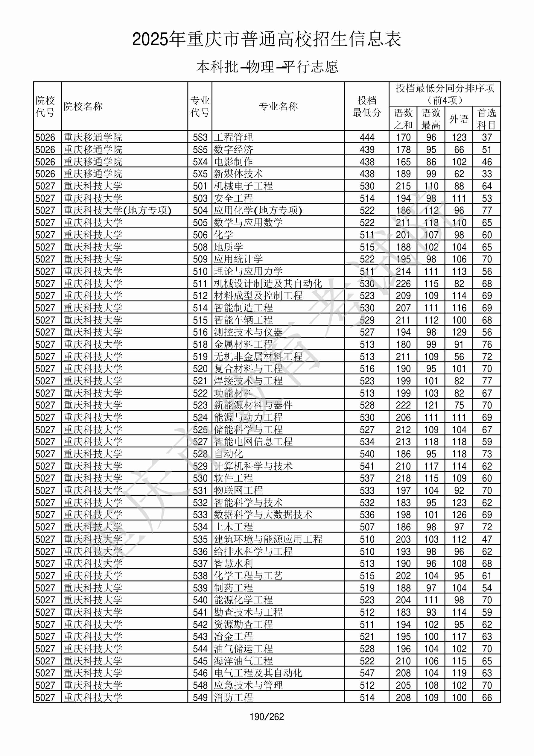 2025年重庆高考普通类本科批 重庆科技大学 的 焊接技术与工程 专业录取分数溯源信息