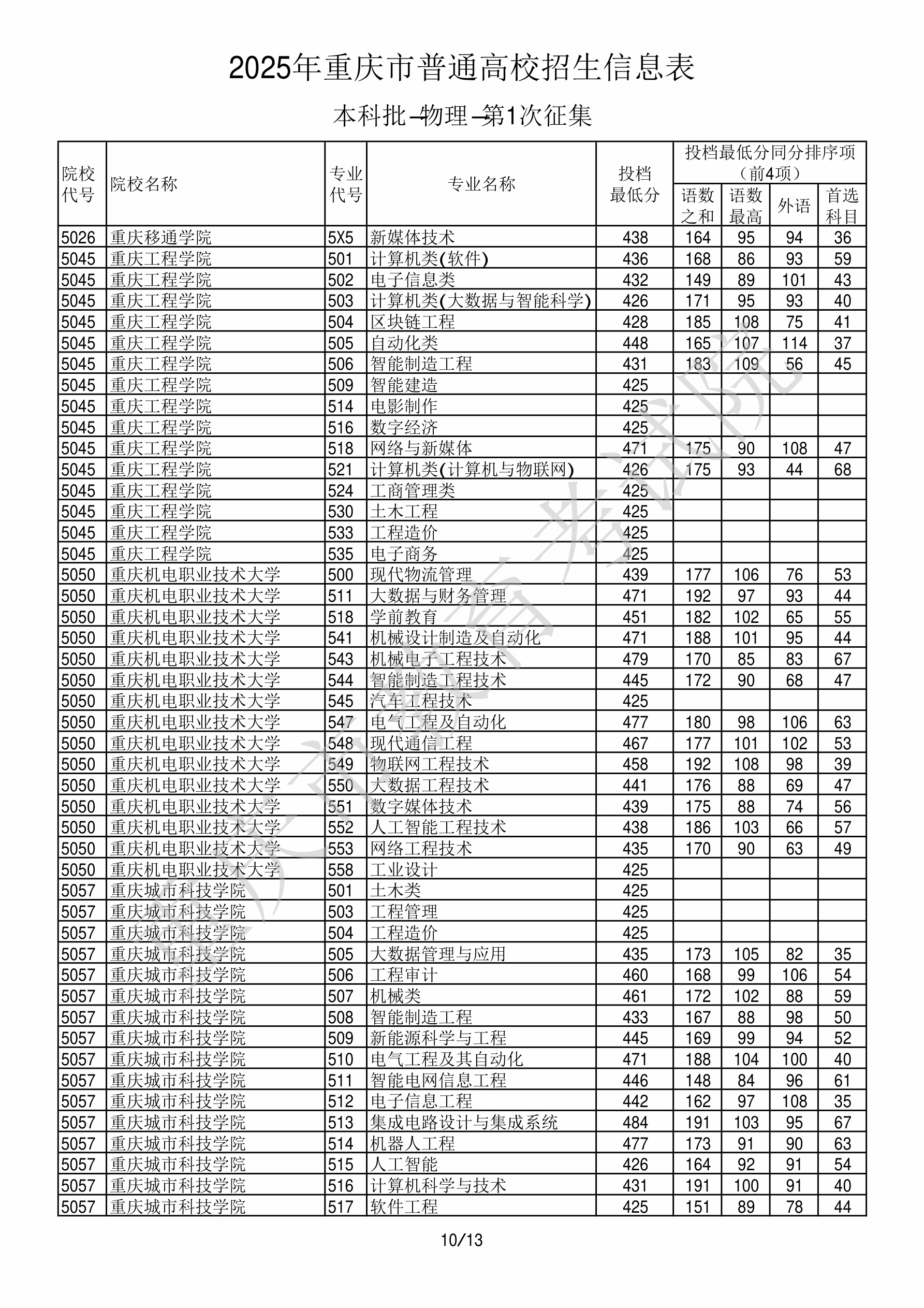 2025年重庆高考普通类本科批 重庆城市科技学院 的 新能源科学与工程 专业录取分数溯源信息