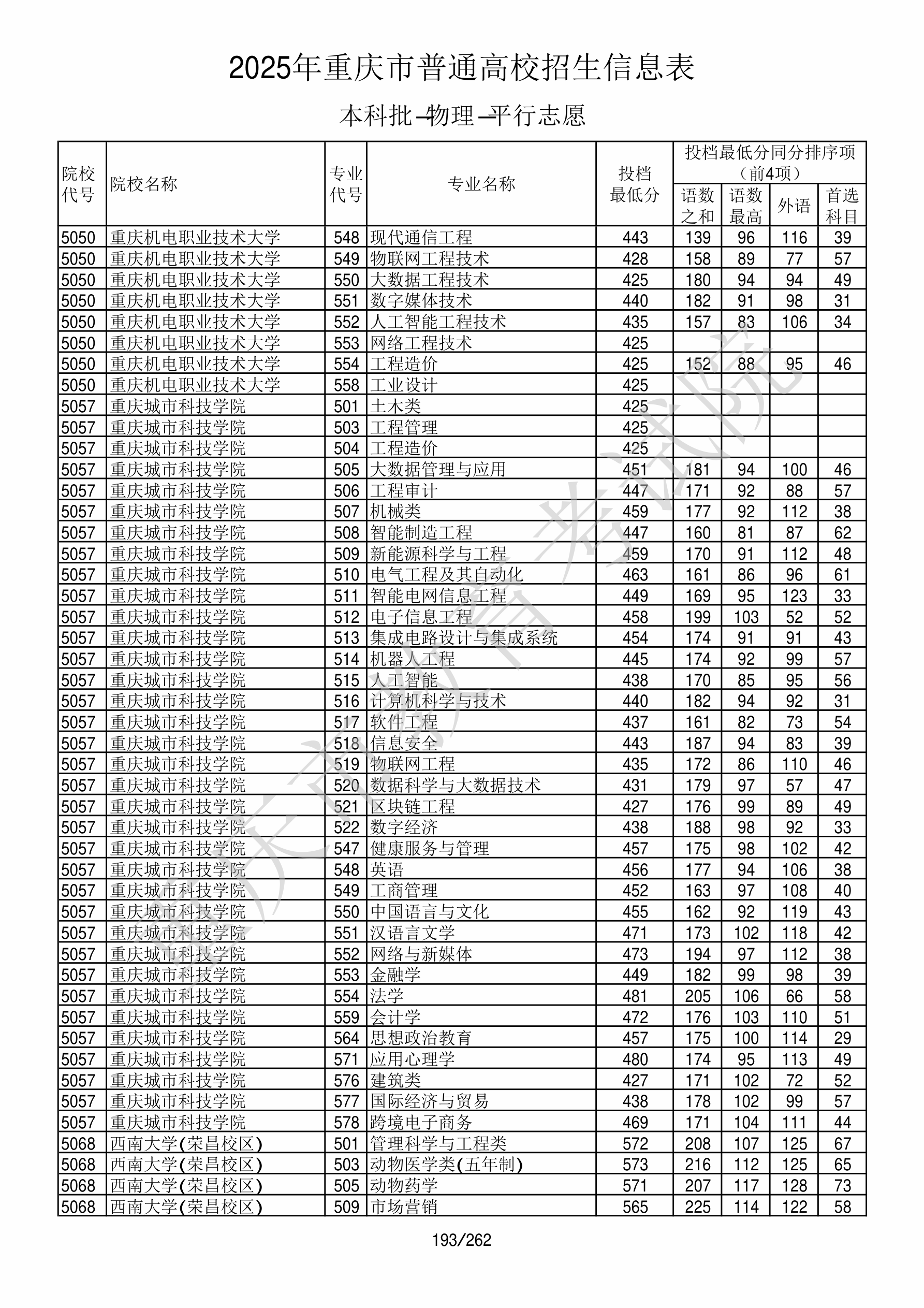 | 院校代码 | 院校名称 | 专业代码 | 专业名称 | 最低分数 | 最低位次 | 专业层次 | 限考科目 | 投档 |