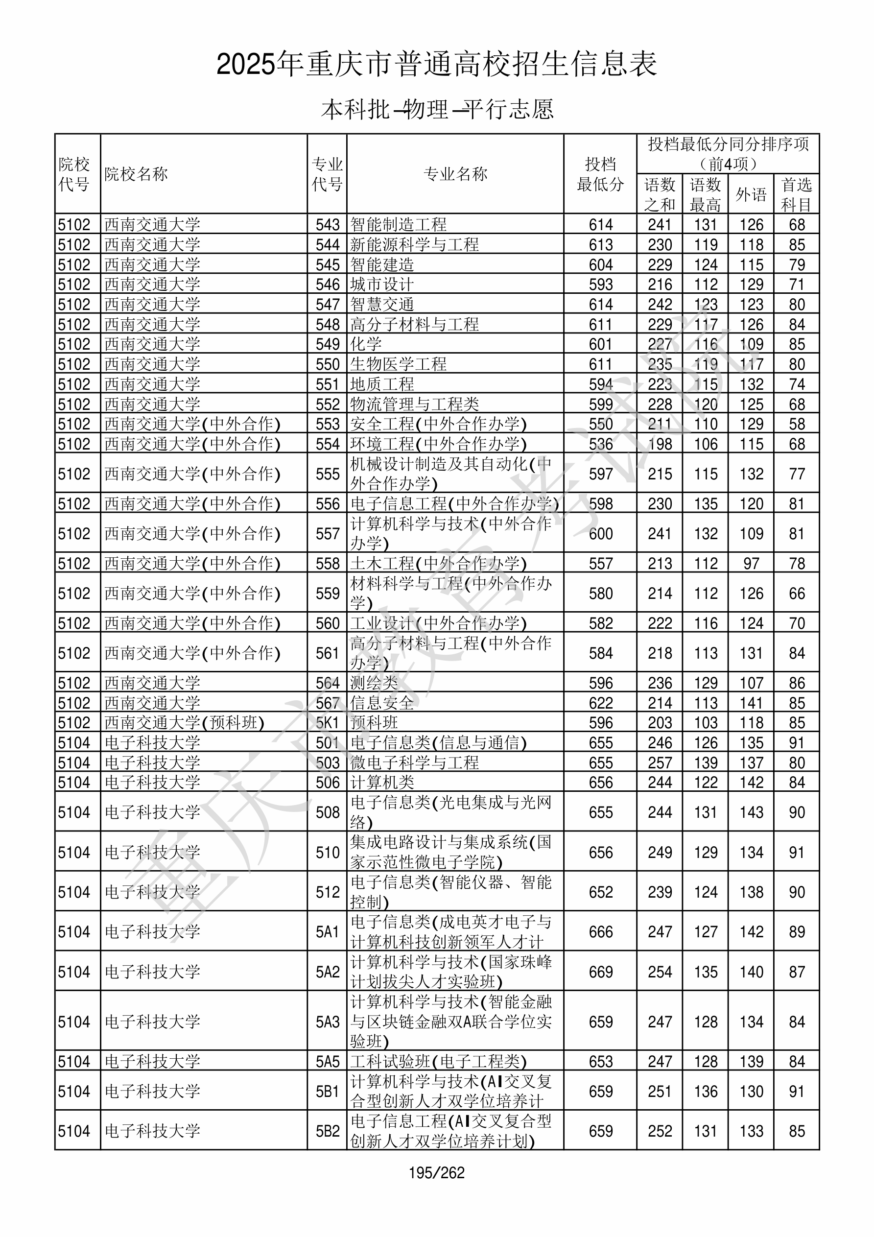 2025年重庆高考普通类本科批 电子科技大学 的 微电子科学与工程 专业录取分数溯源信息