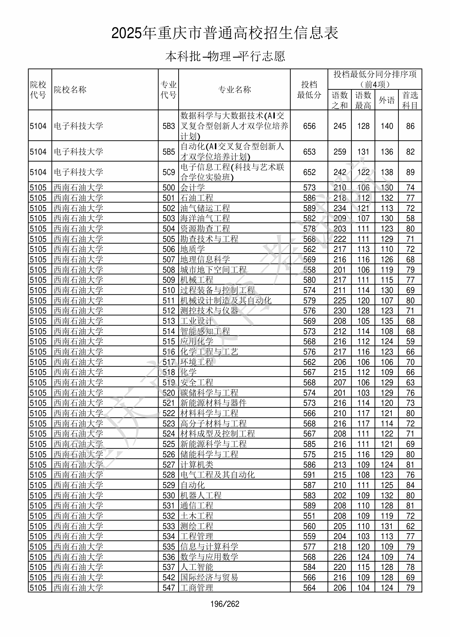 2025年重庆高考普通类本科批 电子科技大学 的 数据科学与大数据技术 专业录取分数溯源信息