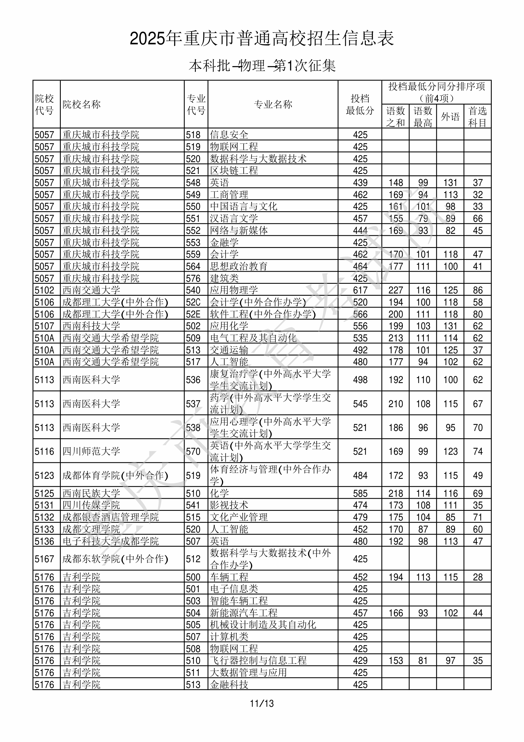 2025年重庆高考普通类本科批 西南交通大学希望学院 的 交通运输 专业录取分数溯源信息