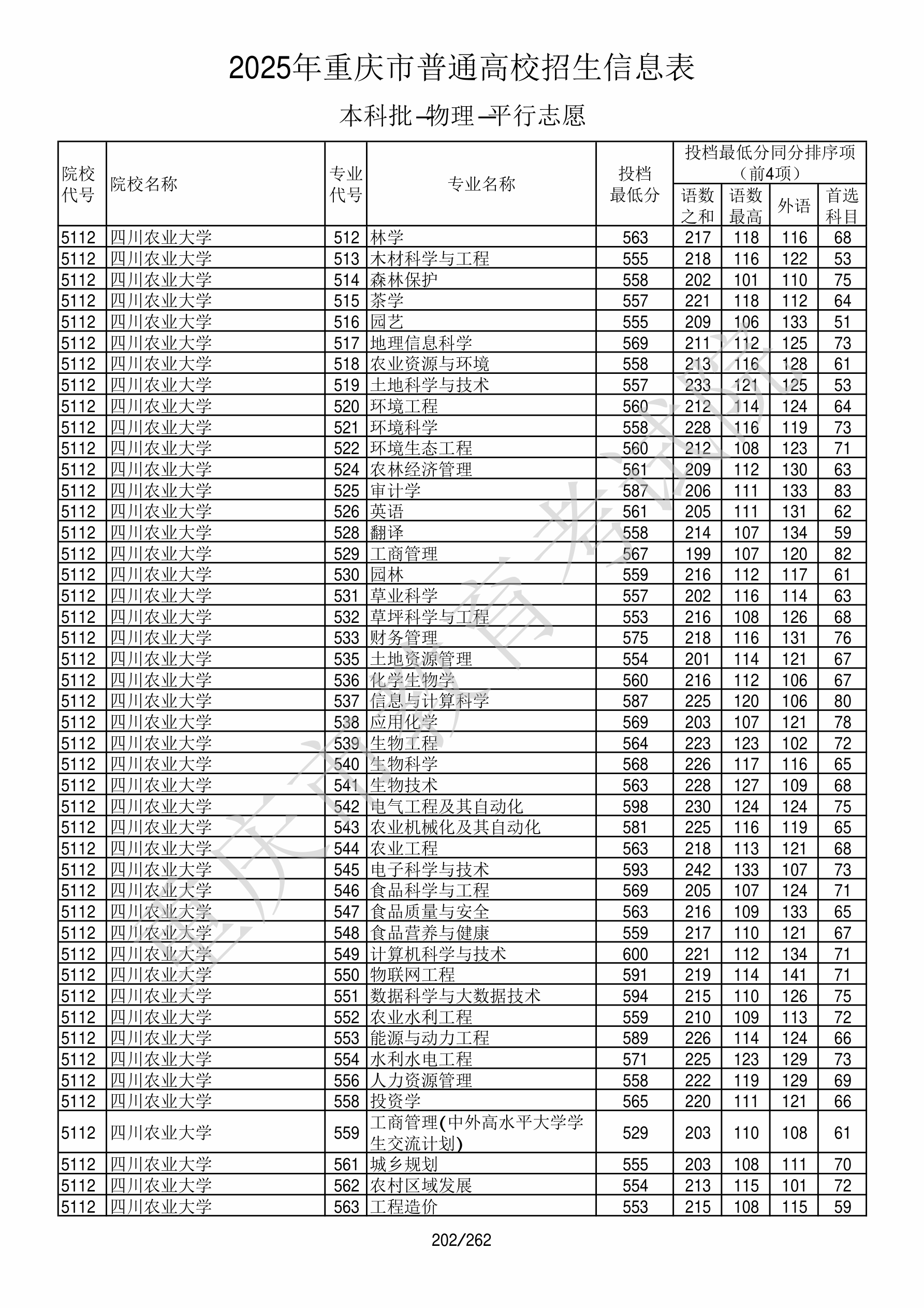2025年重庆高考普通类本科批 四川农业大学 的 环境科学 专业录取分数溯源信息