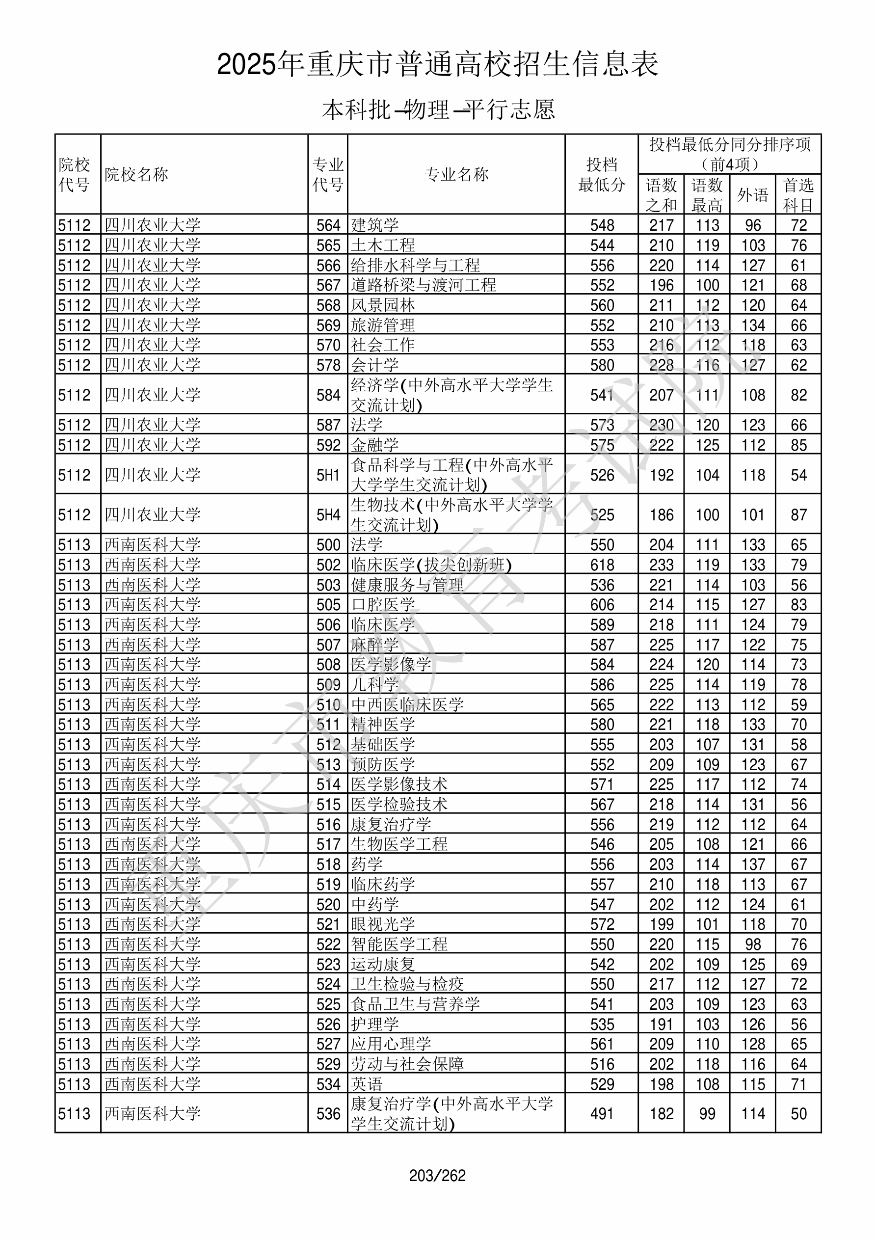 2025年重庆高考普通类本科批 四川农业大学 的 生物技术 专业录取分数溯源信息