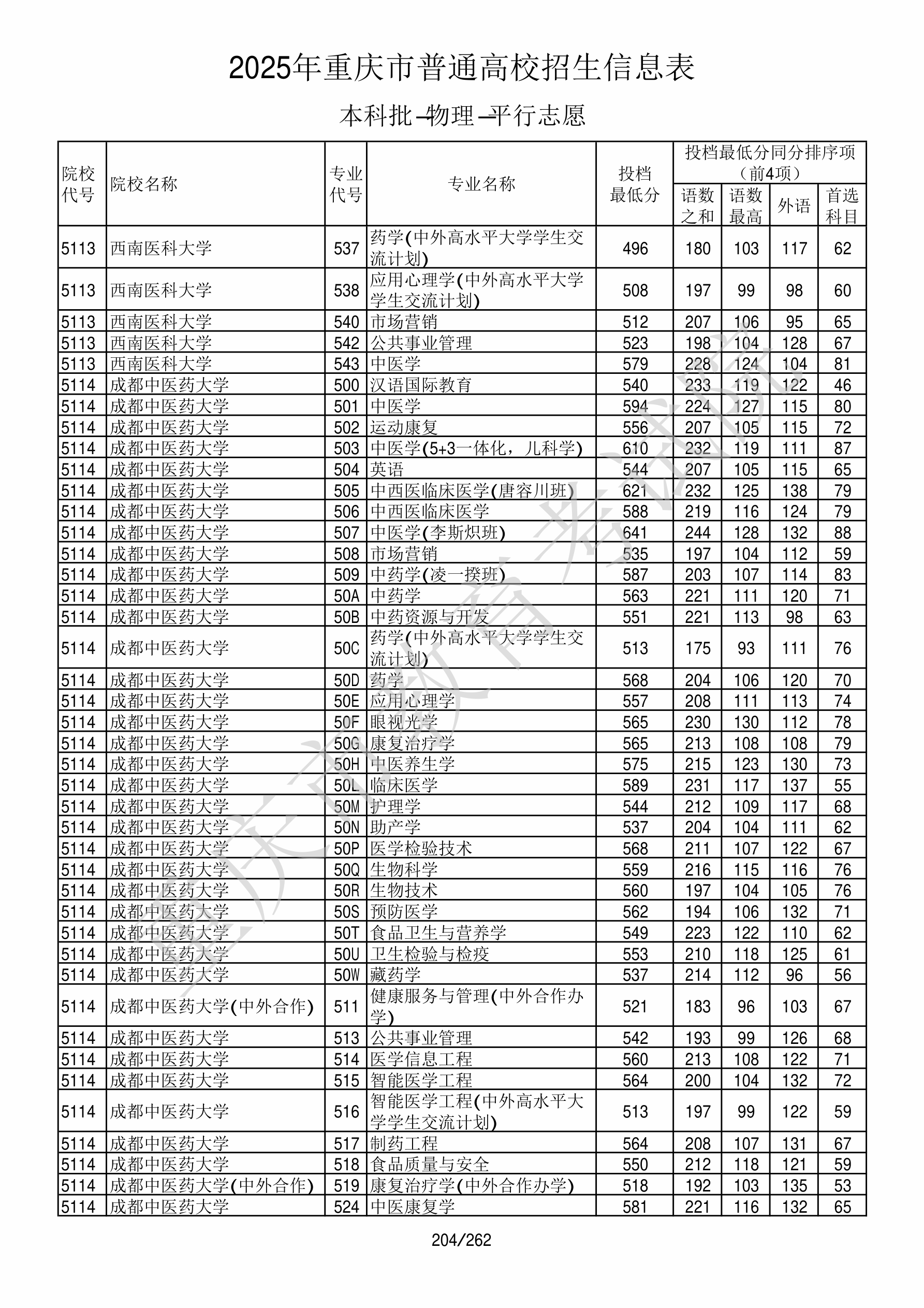 2025年重庆高考普通类本科批 成都中医药大学 的 健康服务与管理 专业录取分数溯源信息