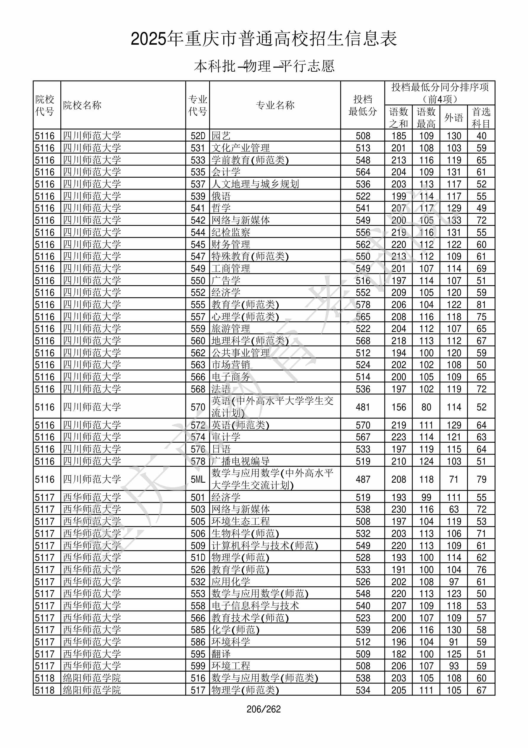 2025年重庆高考普通类本科批 绵阳师范学院 的 物理学 专业录取分数溯源信息