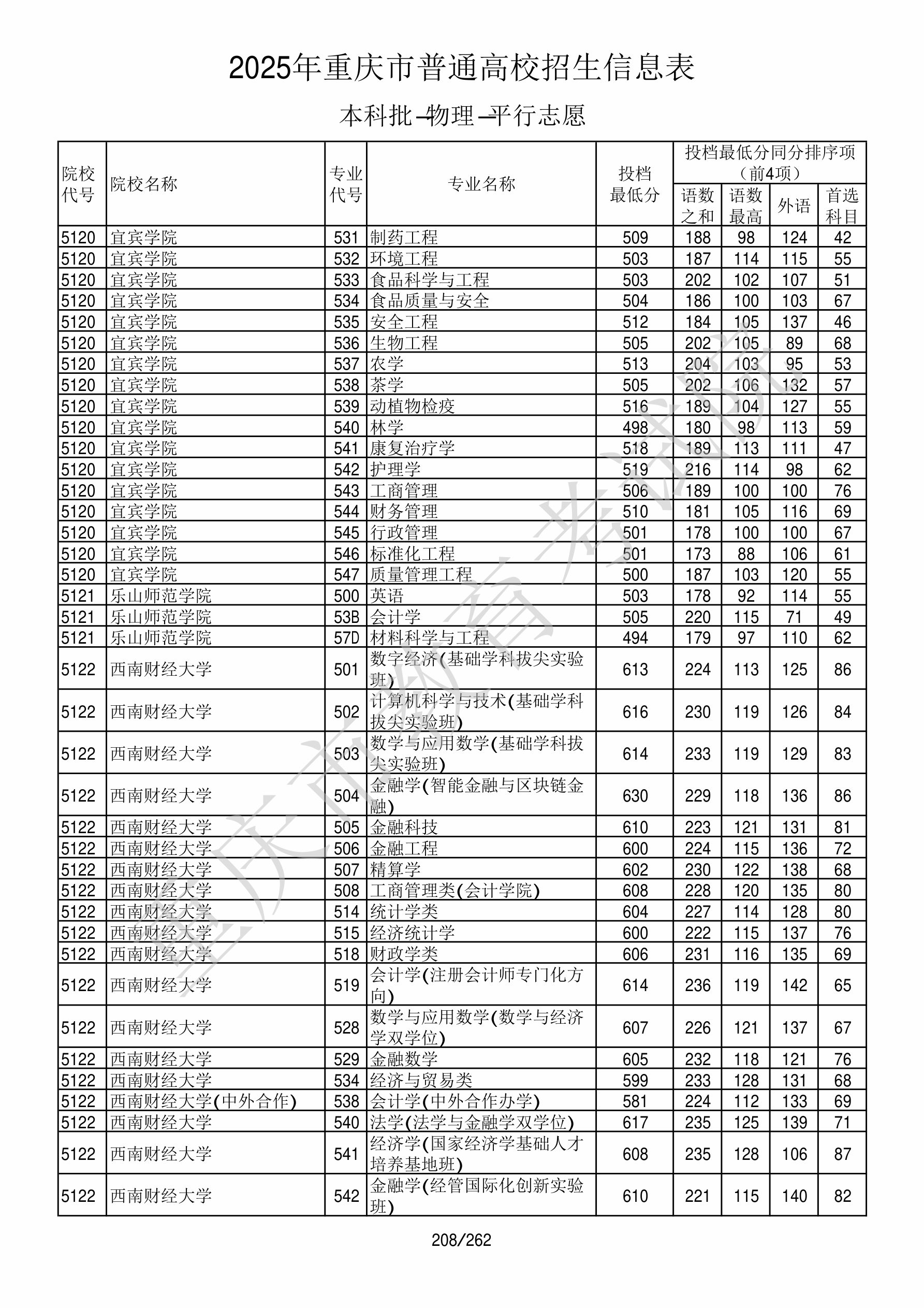 | 院校代码 | 院校名称 | 专业代码 | 专业名称 | 最低分数 | 最低位次 | 专业层次 | 限考科目 | 投档 |