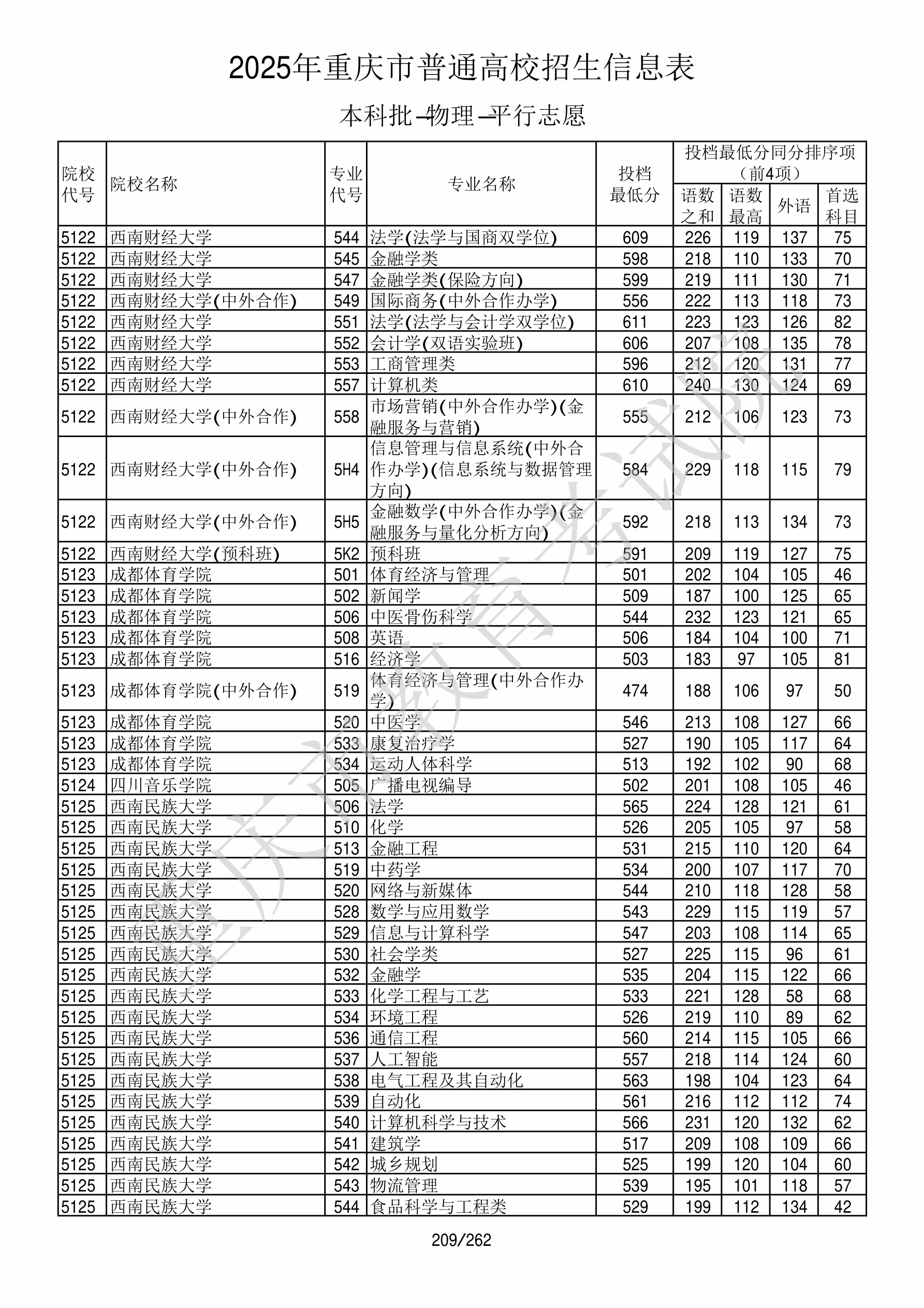 | 院校代码 | 院校名称 | 专业代码 | 专业名称 | 最低分数 | 最低位次 | 专业层次 | 限考科目 | 投档 |