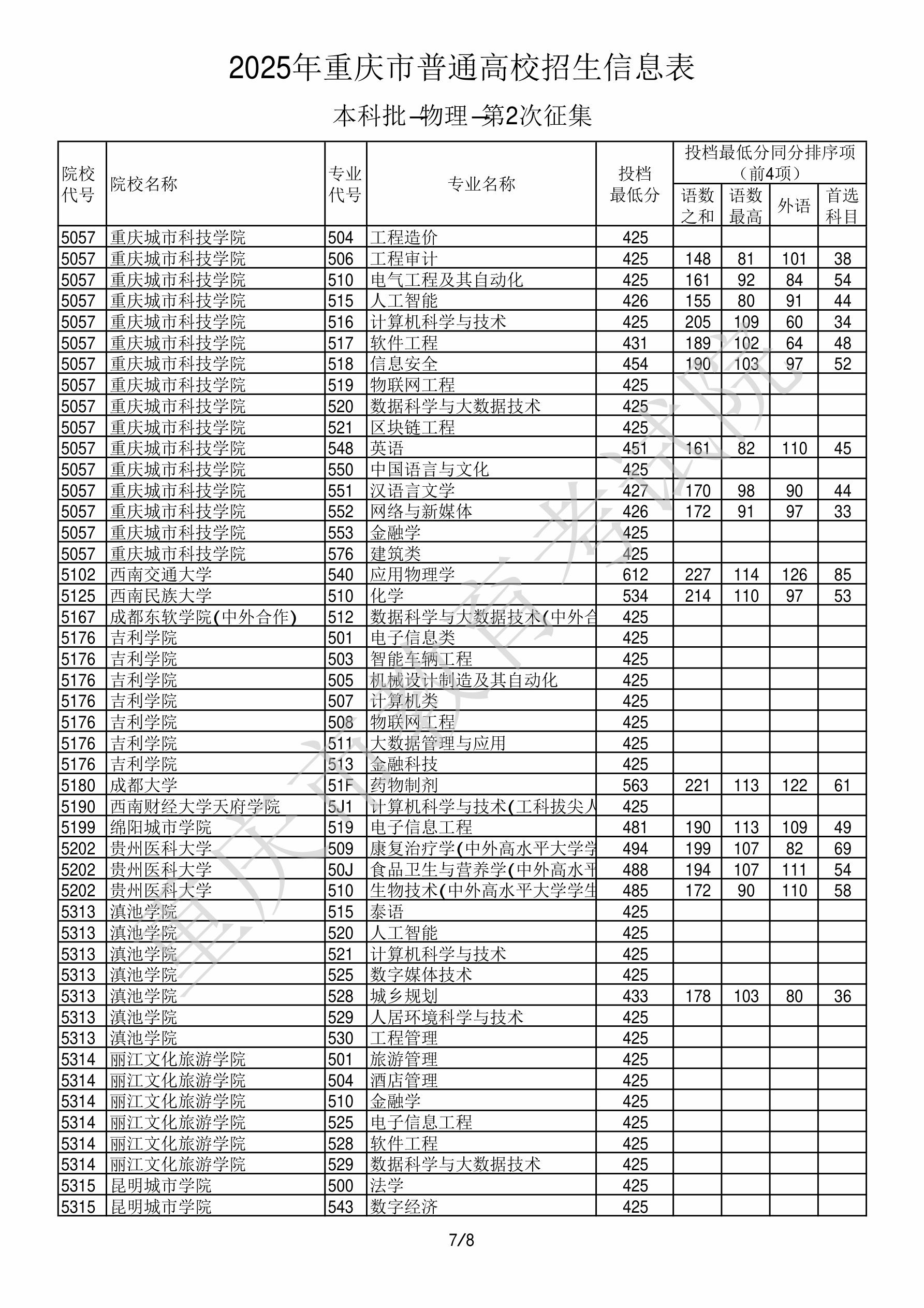 2025年重庆高考普通类本科批 西南民族大学 的 化学 专业录取分数溯源信息