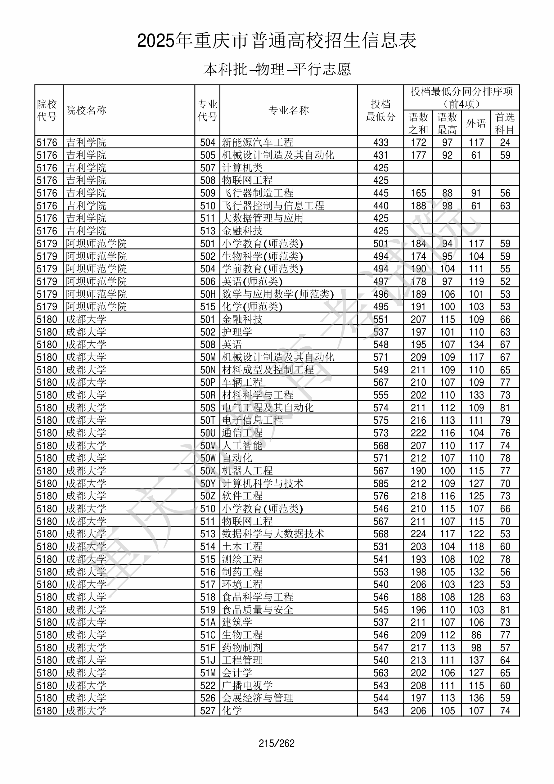 2025年重庆高考普通类本科批 吉利学院 的 大数据管理与应用 专业录取分数溯源信息