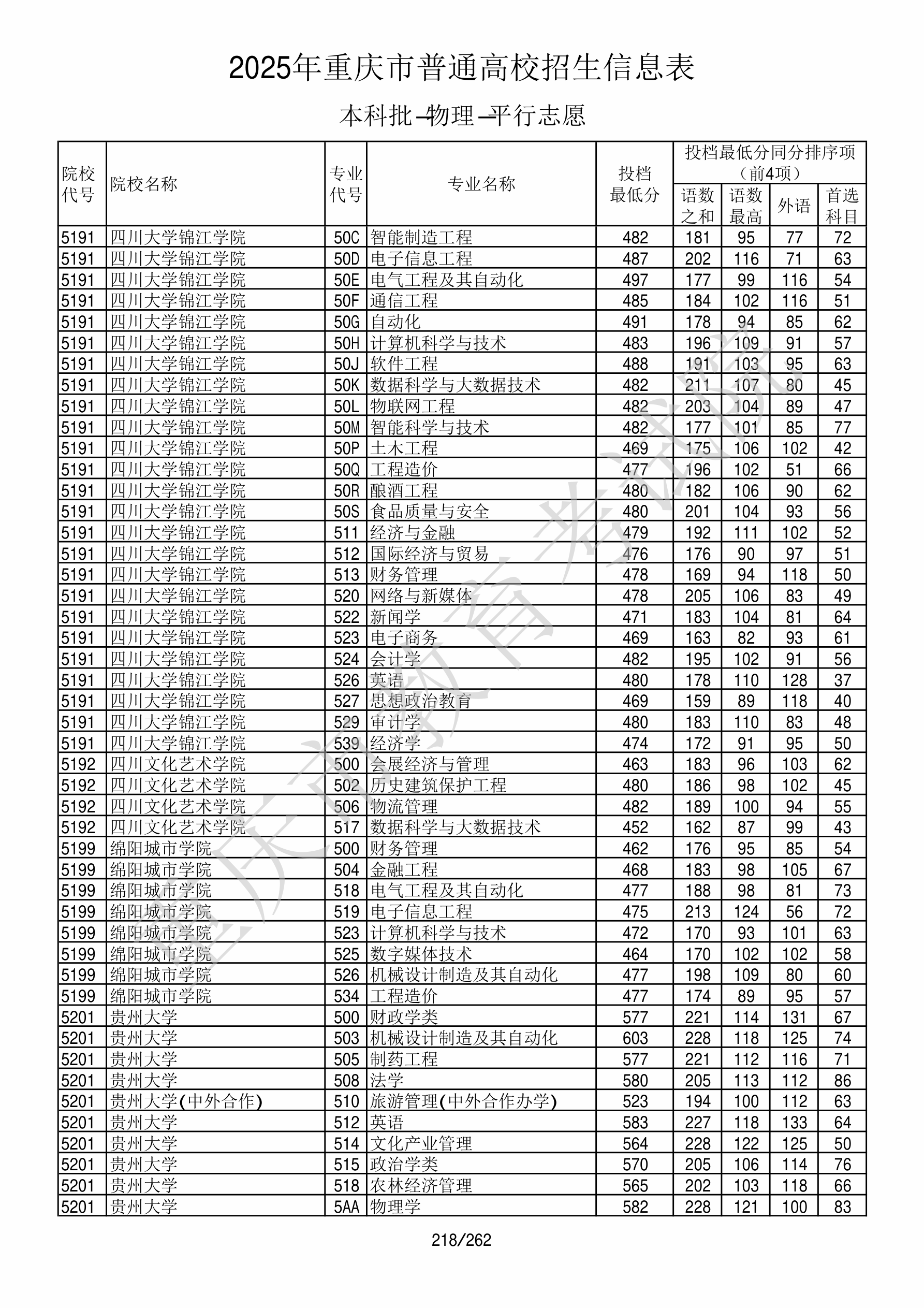 | 院校代码 | 院校名称 | 专业代码 | 专业名称 | 最低分数 | 最低位次 | 专业层次 | 限考科目 | 投档 |