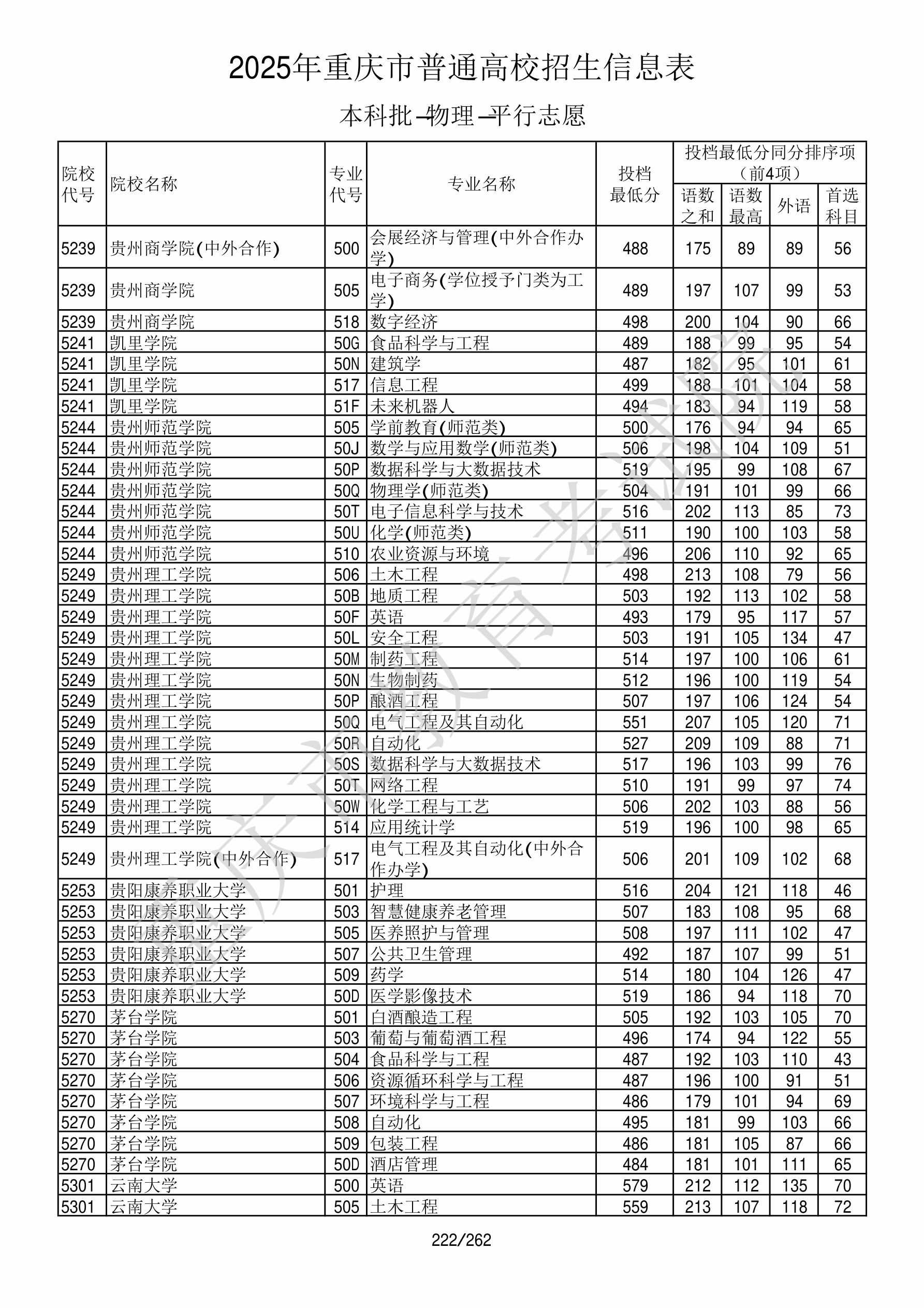 2025年重庆高考普通类本科批 贵阳康养职业大学 的 药学 专业录取分数溯源信息