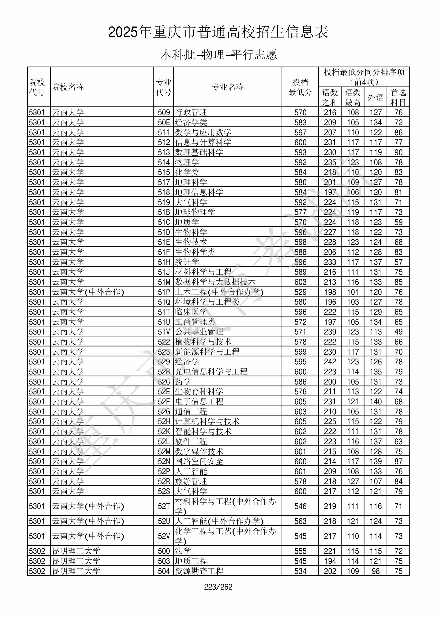 2025年重庆高考普通类本科批 云南大学 的 数学与应用数学 专业录取分数溯源信息