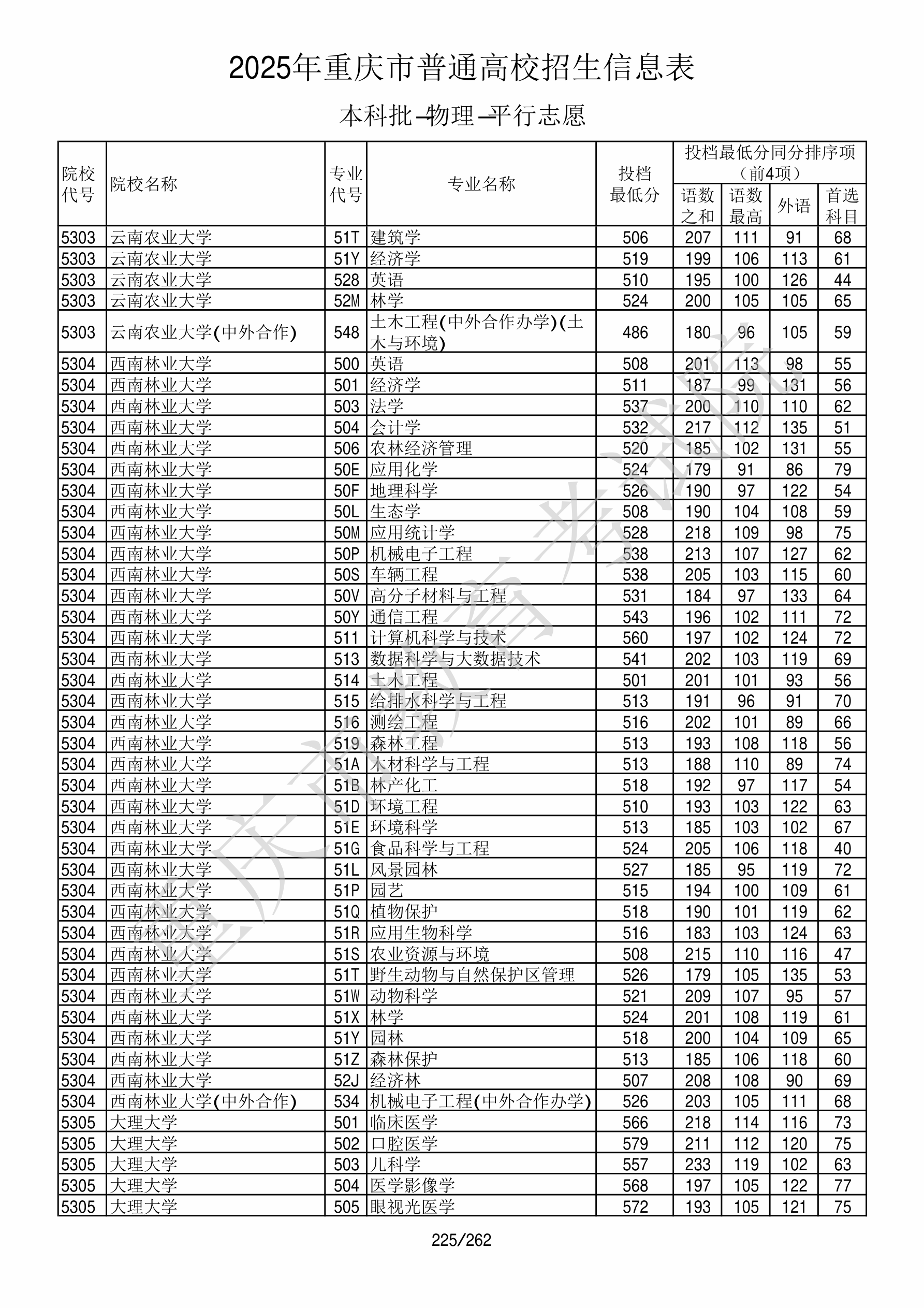 2025年重庆高考普通类本科批 大理大学 的 眼视光医学 专业录取分数溯源信息