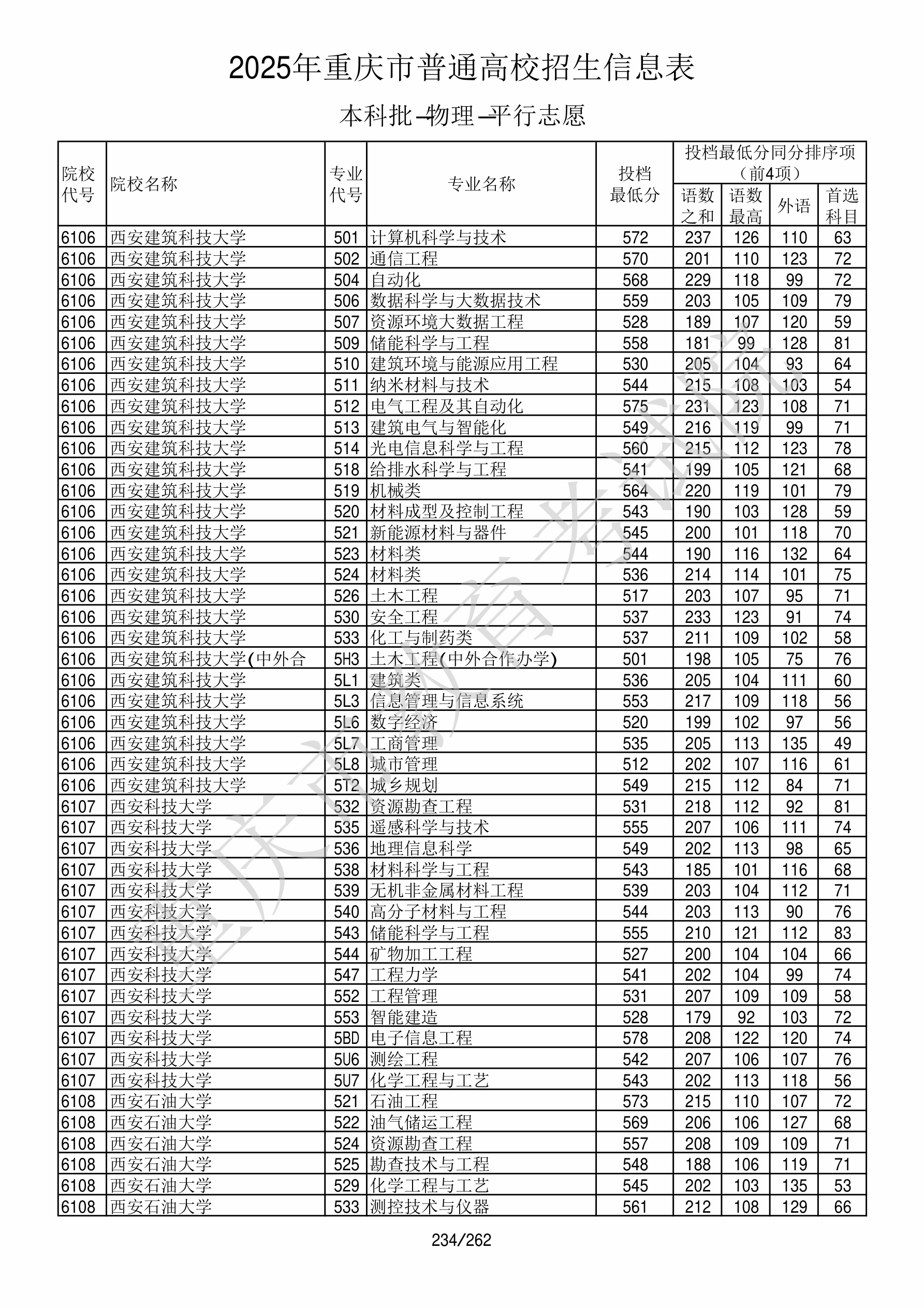 2025年重庆高考普通类本科批 西安建筑科技大学 的 纳米材料与技术 专业录取分数溯源信息