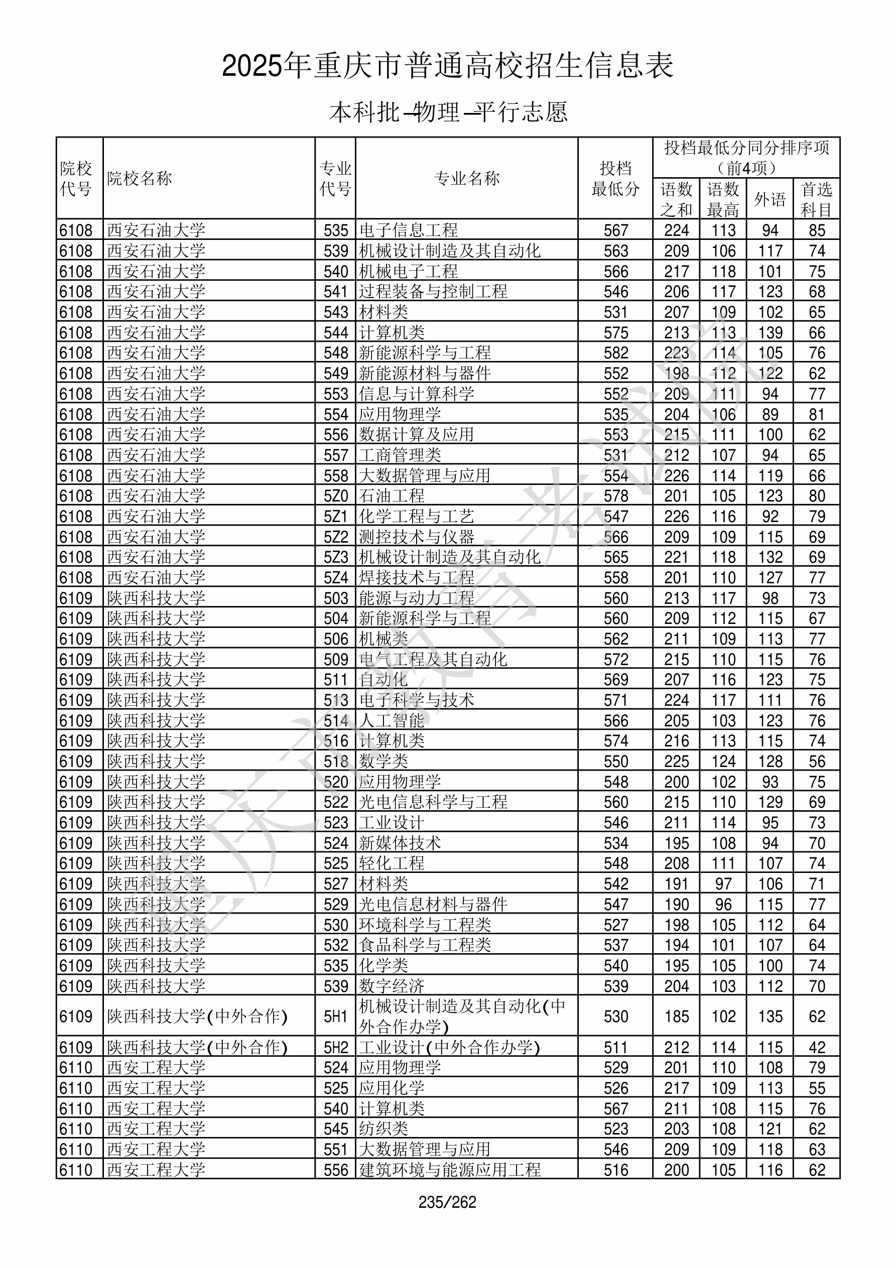 2025年重庆高考普通类本科批 陕西科技大学 的 自动化 专业录取分数溯源信息