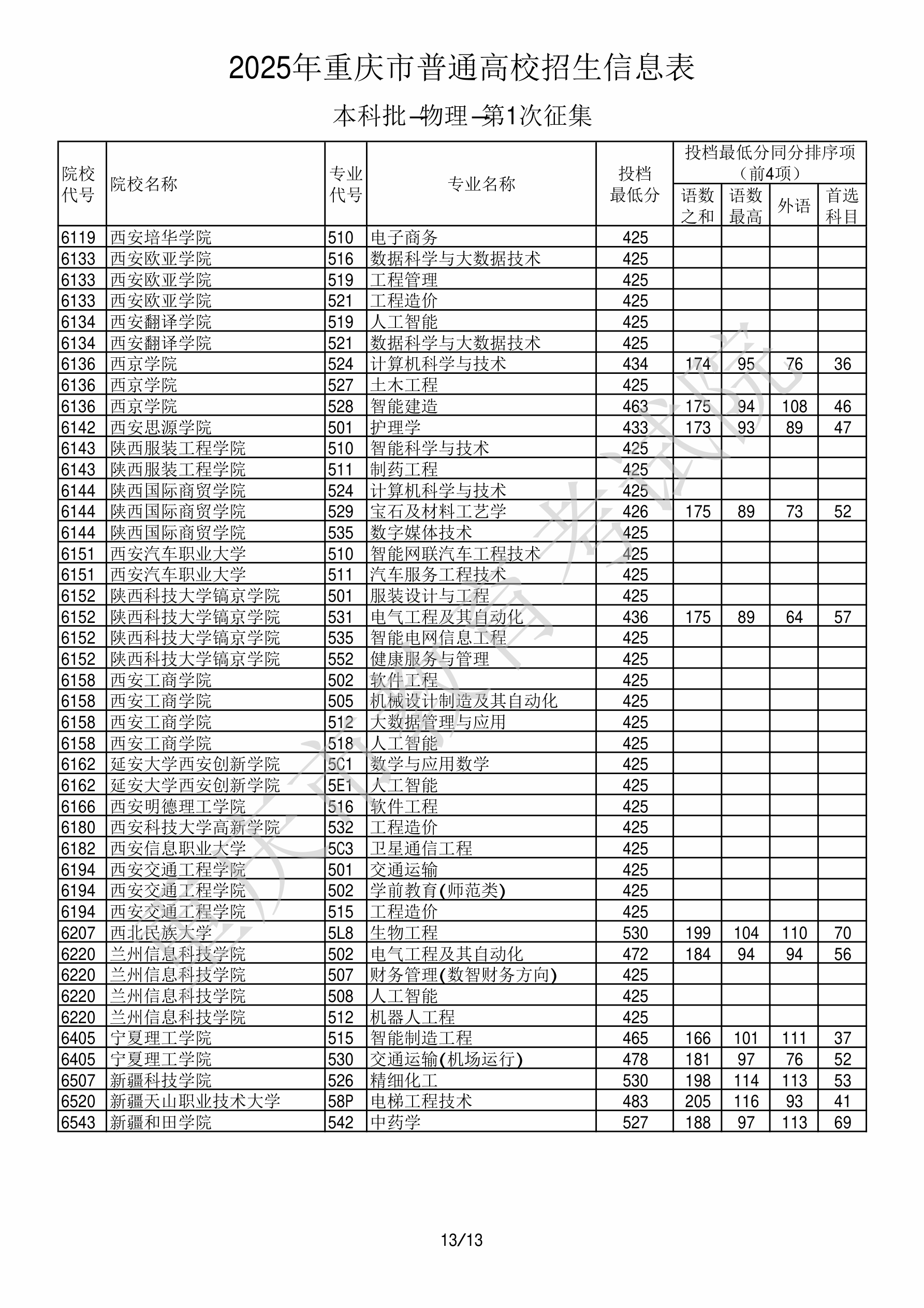 2025年重庆高考普通类本科批 陕西科技大学镐京学院 的 服装设计与工程 专业录取分数溯源信息