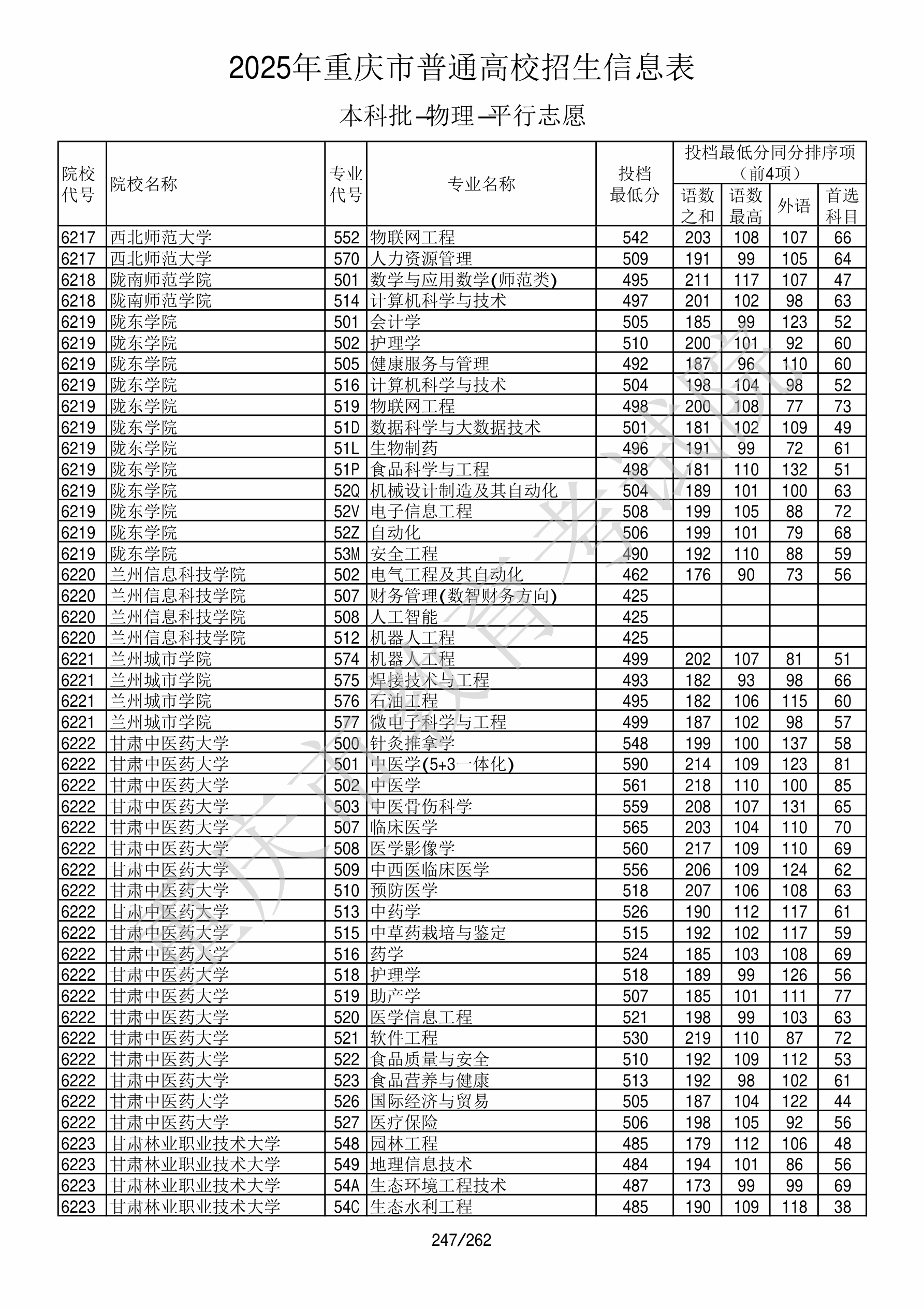 2025年重庆高考普通类本科批 陇南师范学院 的 数学与应用数学 专业录取分数溯源信息