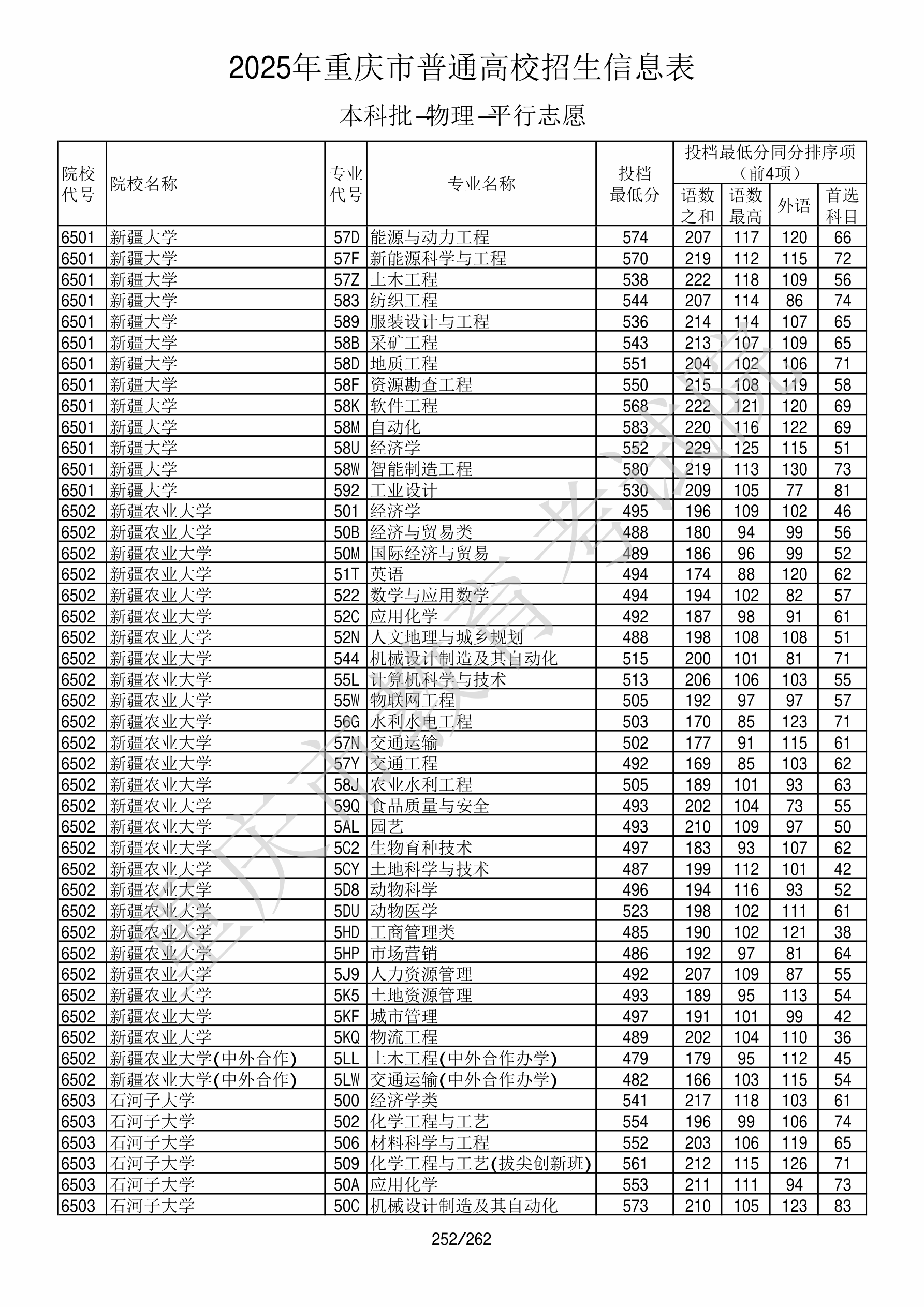 | 6503 | 石河子大学 | 506 | 材料科学与工程 | 552 | 31257 | 本科 | 物理 ,再选: 化学 | 1 |