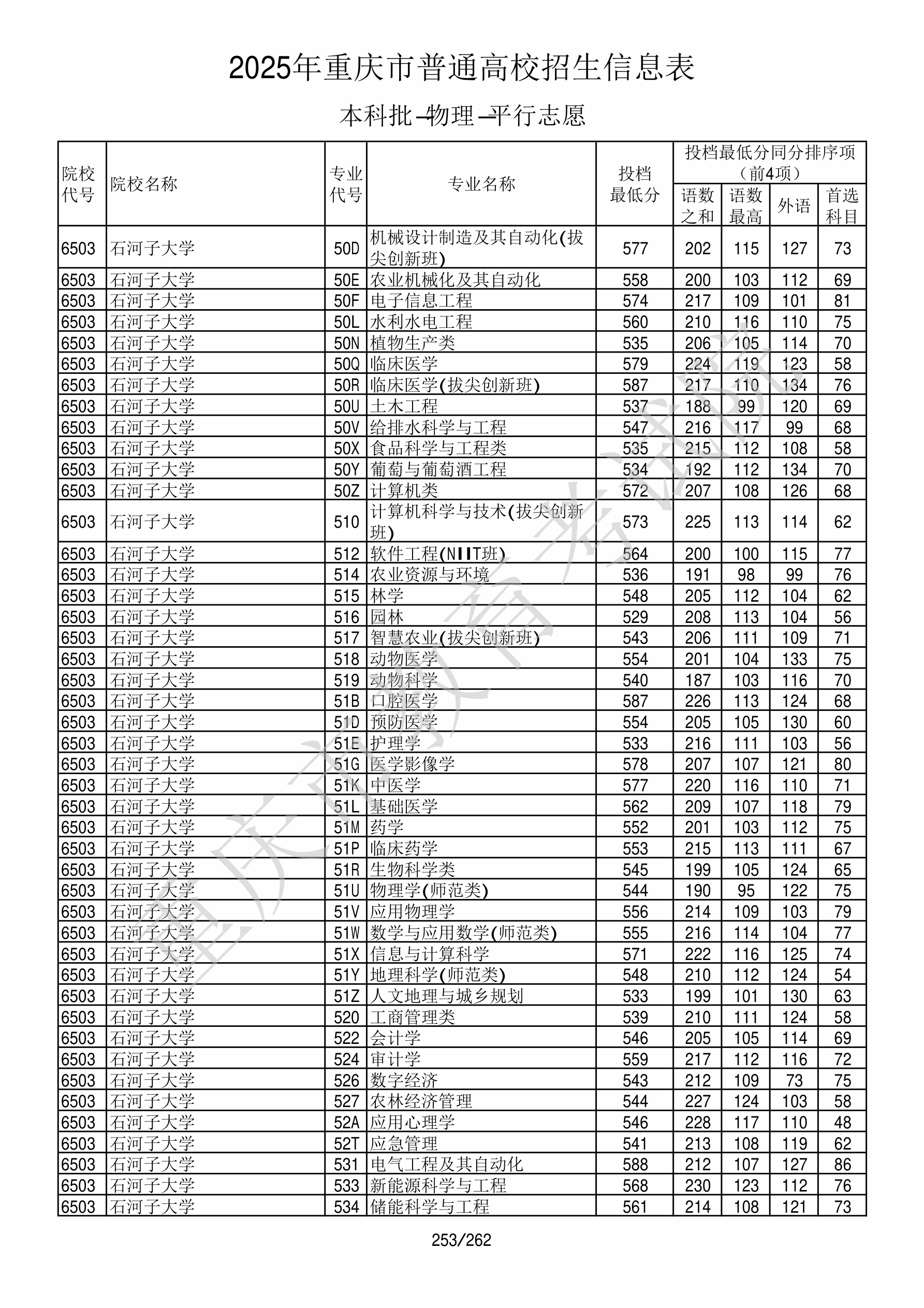 2025年重庆高考普通类本科批 石河子大学 的 人文地理与城乡规划 专业录取分数溯源信息