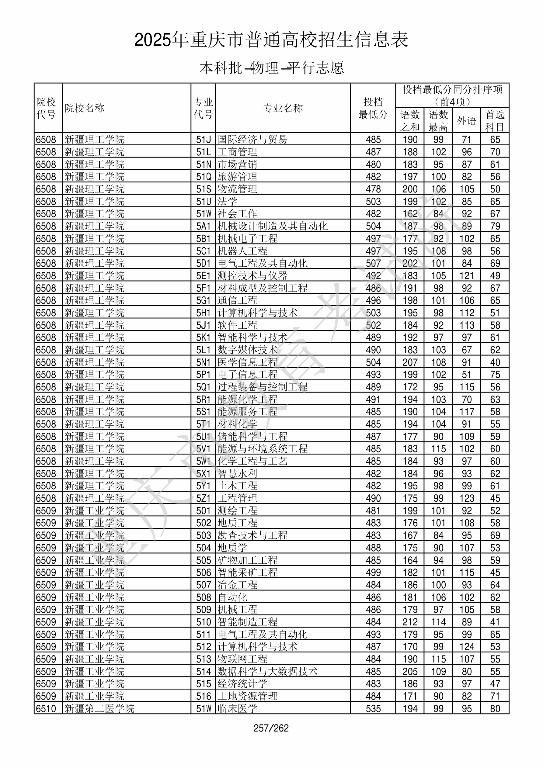 2025年重庆高考普通类本科批 新疆工业学院 的 电气工程及其自动化 专业录取分数溯源信息