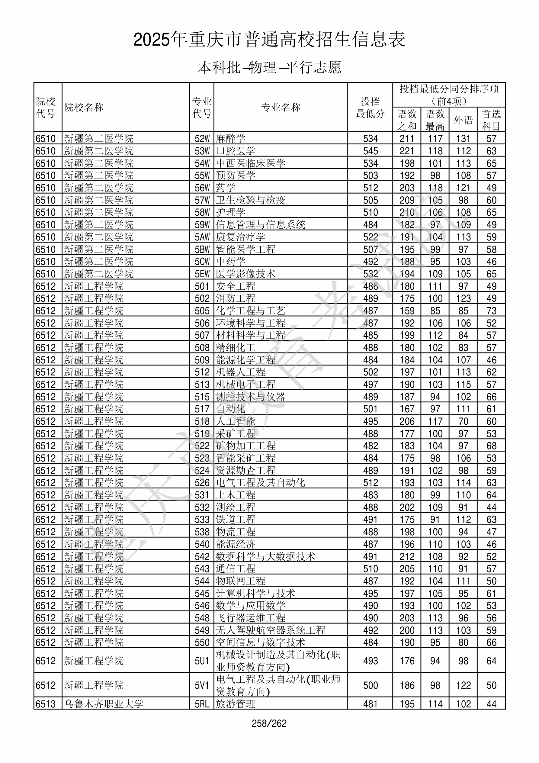 2025年重庆高考普通类本科批 乌鲁木齐职业大学 的 旅游管理 专业录取分数溯源信息