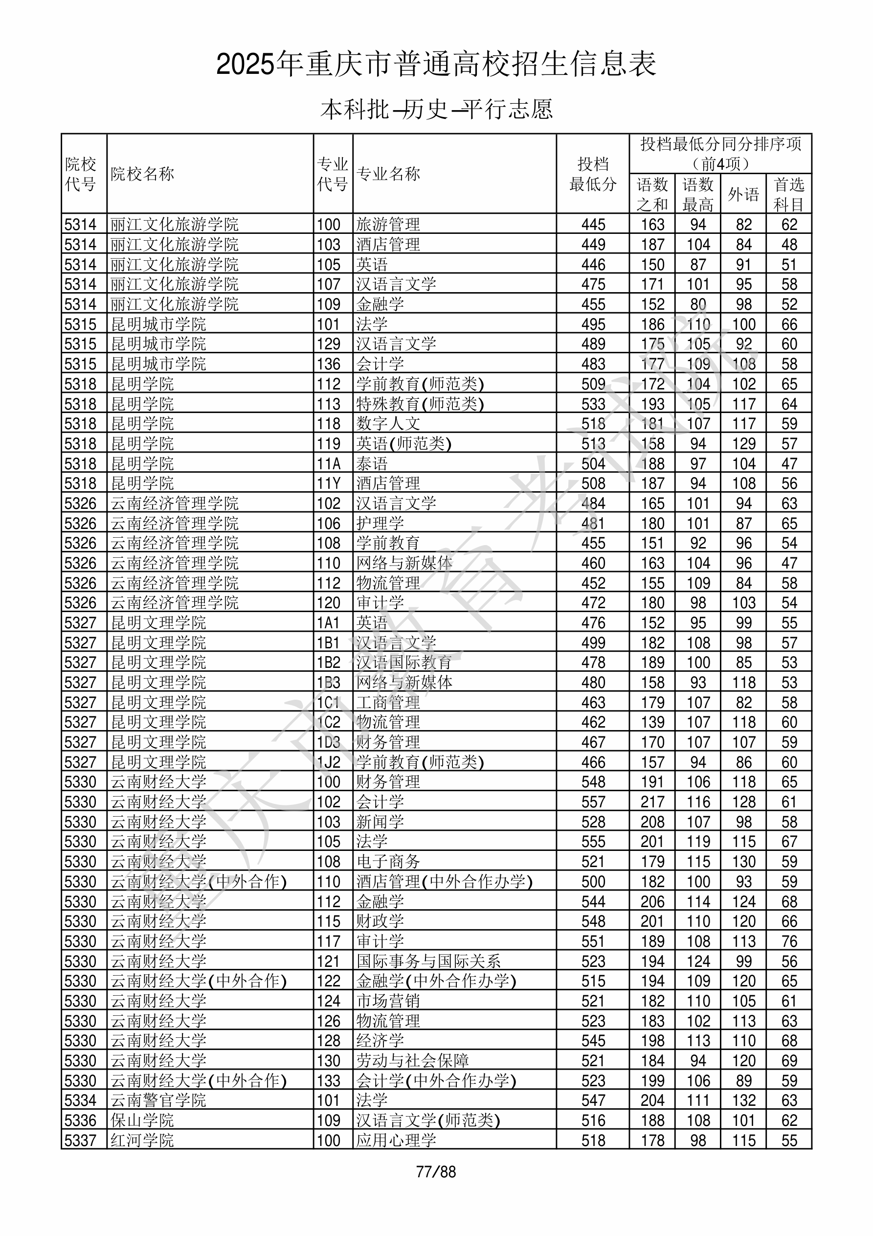 2025年重庆高考普通类本科批 云南经济管理学院 的 汉语言文学 专业录取分数溯源信息
