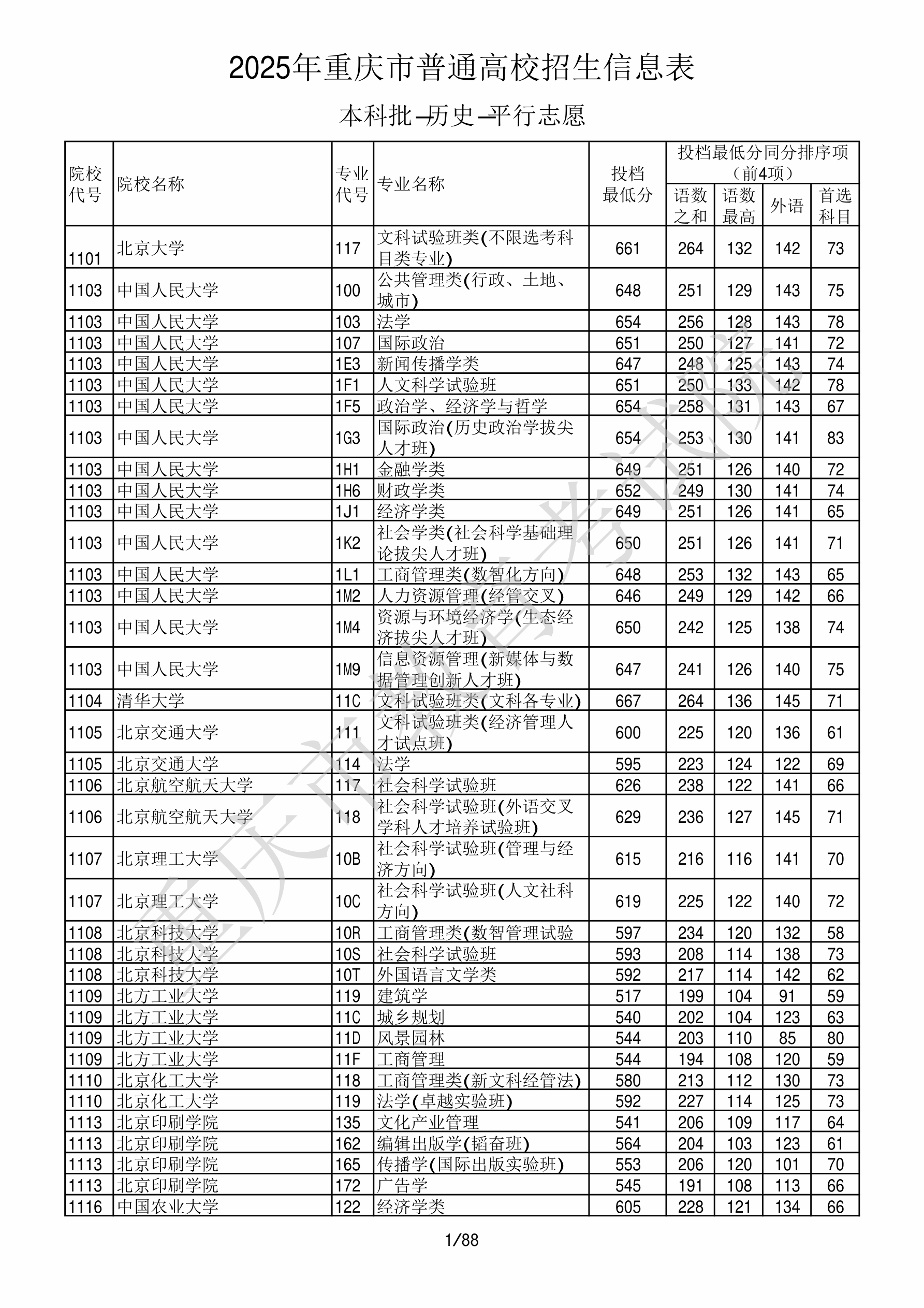 2025年重庆高考普通类本科批 北京化工大学 的 法学 专业录取分数溯源信息