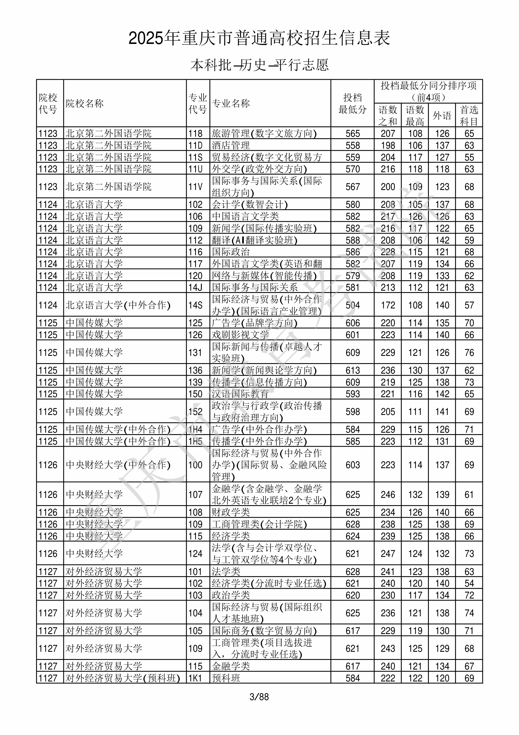 2025年重庆高考普通类本科批 北京语言大学 的 中国语言文学类 专业录取分数溯源信息
