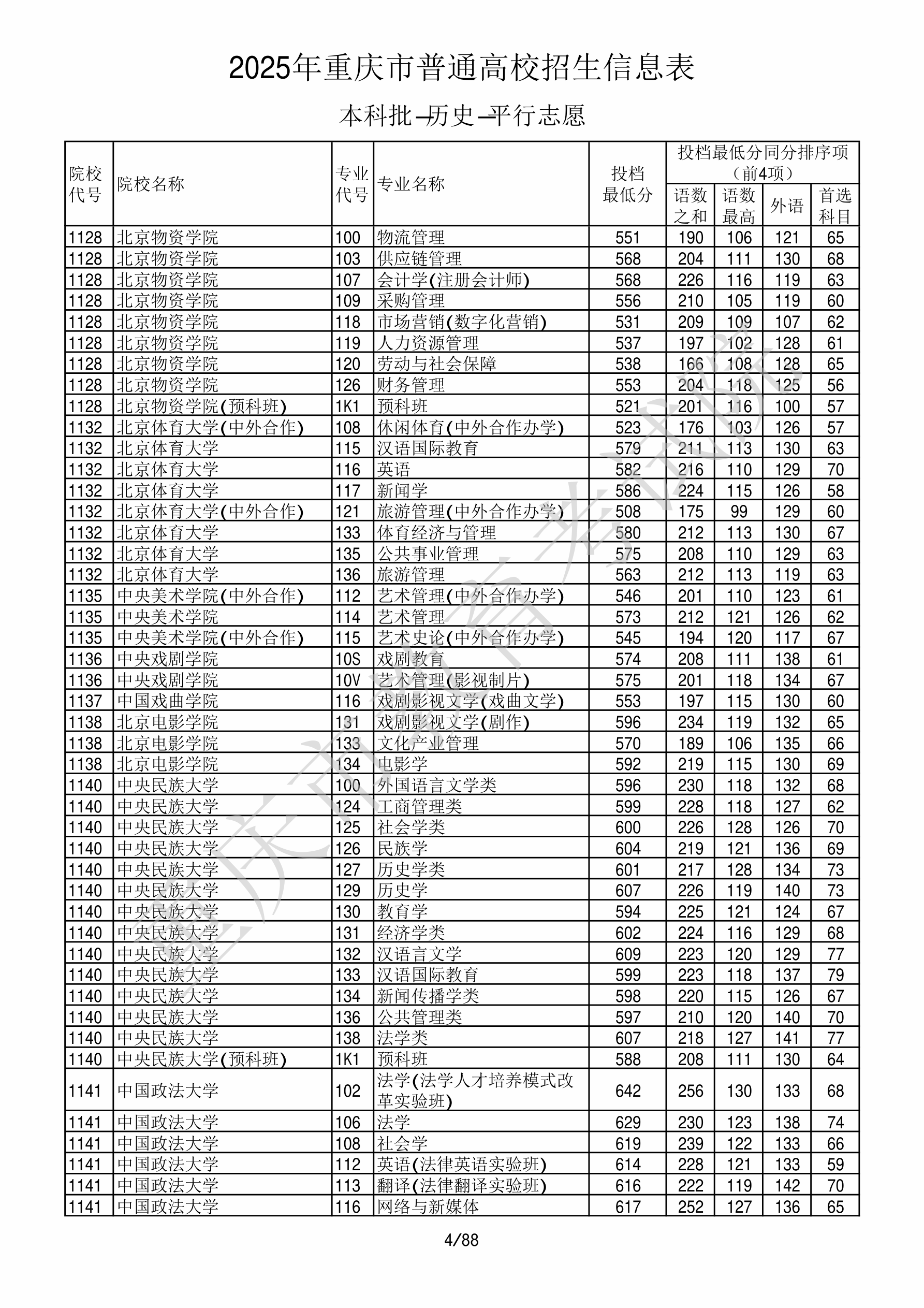 2025年重庆高考普通类本科批 北京物资学院 的 供应链管理 专业录取分数溯源信息