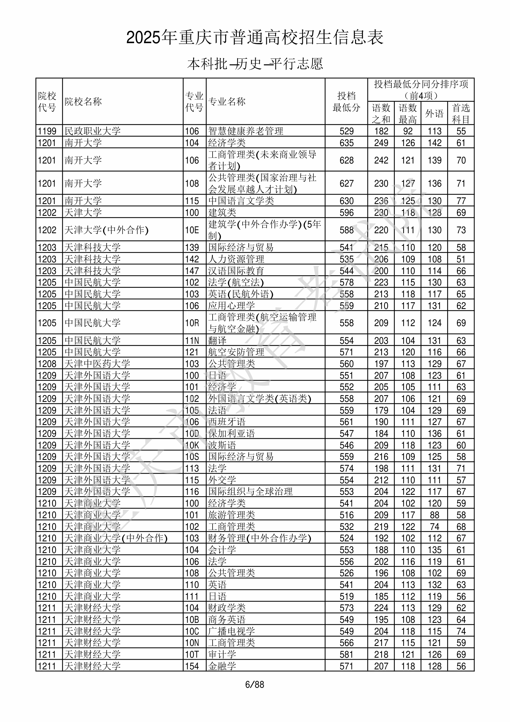 2025年重庆高考普通类本科批 天津商业大学 的 英语 专业录取分数溯源信息