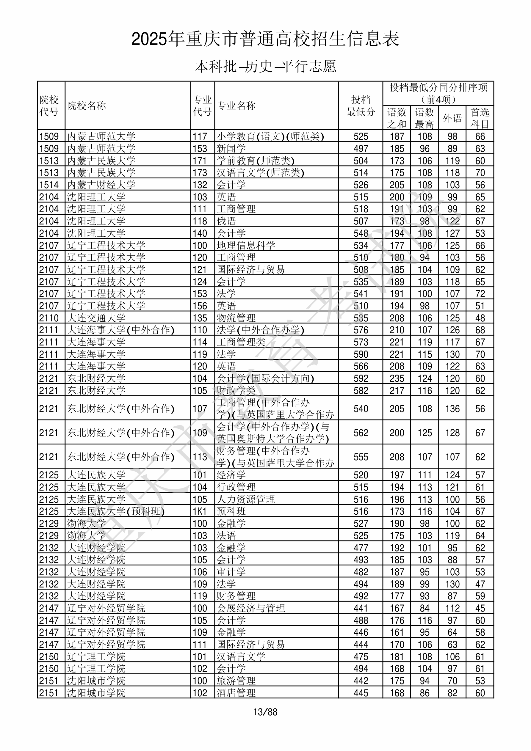 2025年重庆高考普通类本科批 辽宁工程技术大学 的 英语 专业录取分数溯源信息