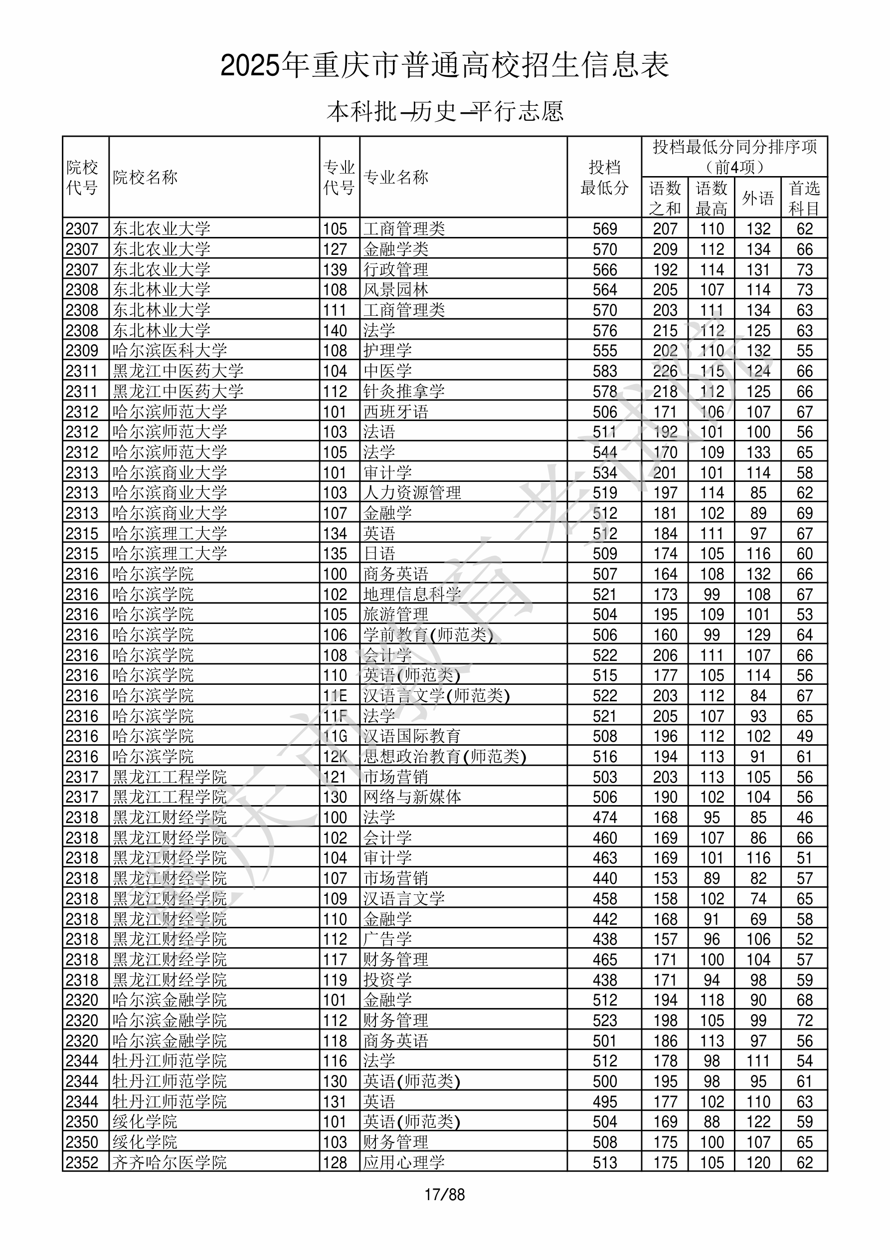 2025年重庆高考普通类本科批 齐齐哈尔医学院 的 应用心理学 专业录取分数溯源信息