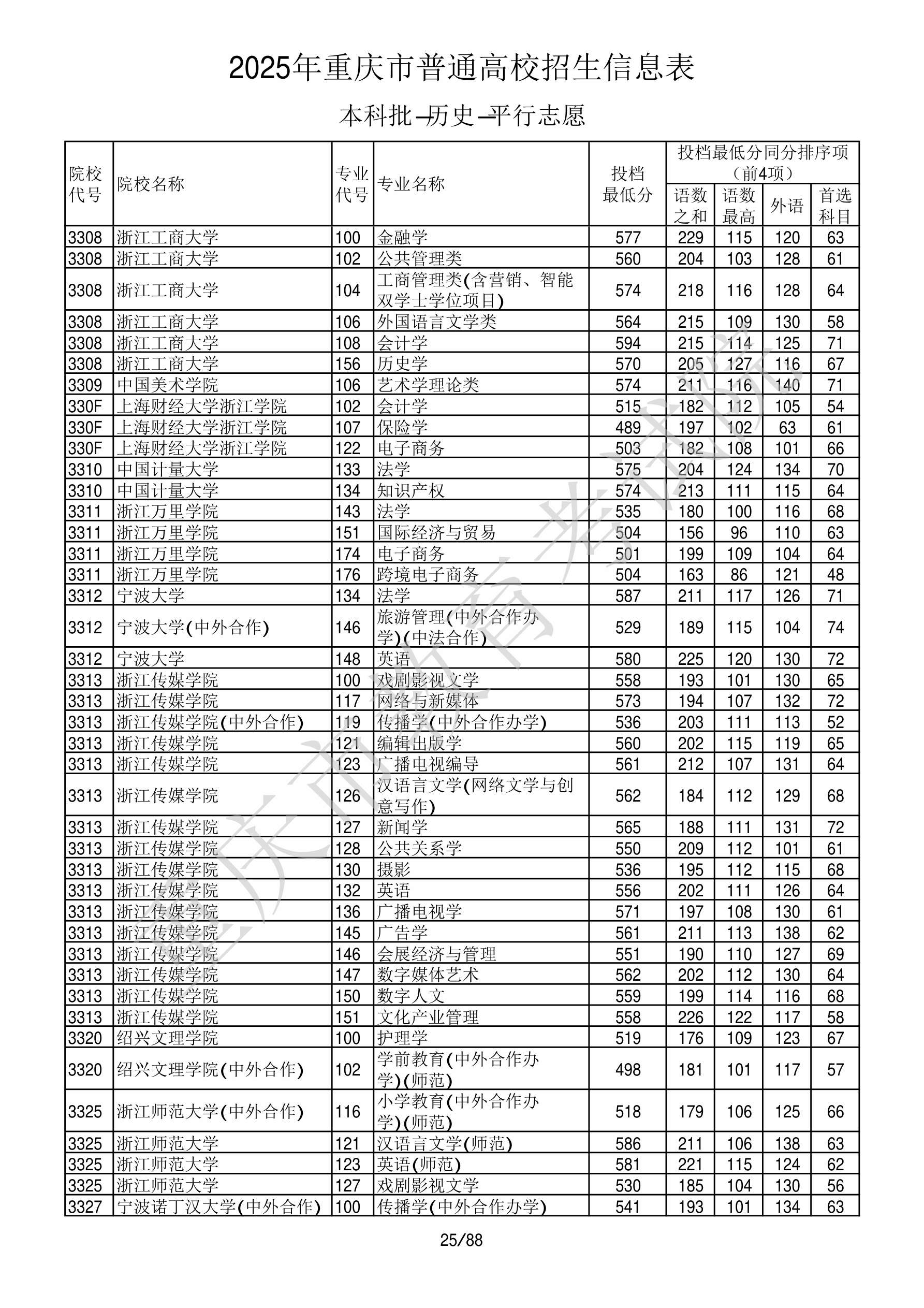 2025年重庆高考普通类本科批 宁波大学 的 法学 专业录取分数溯源信息
