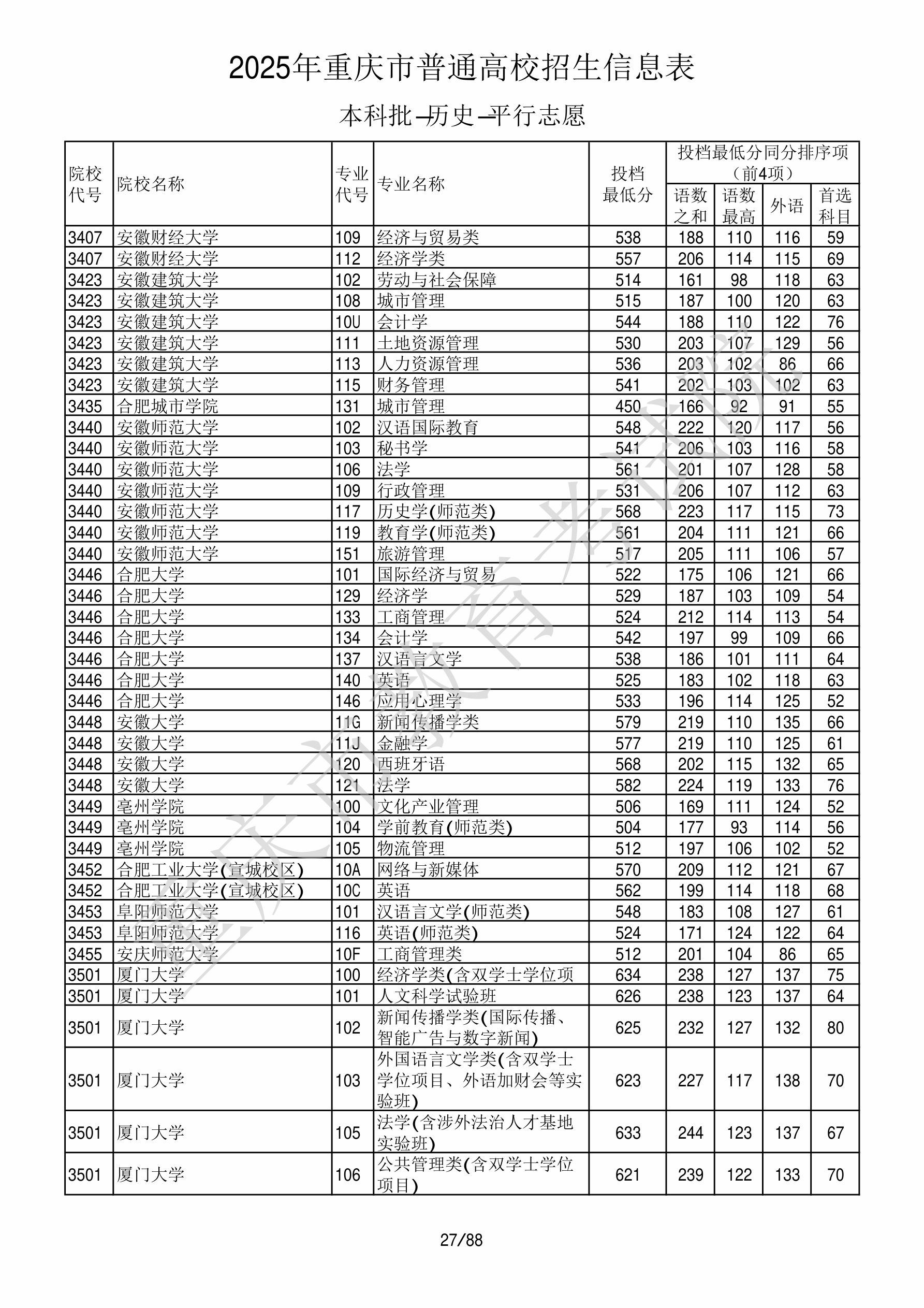 2025年重庆高考普通类本科批 厦门大学 的 人文科学试验班 专业录取分数溯源信息