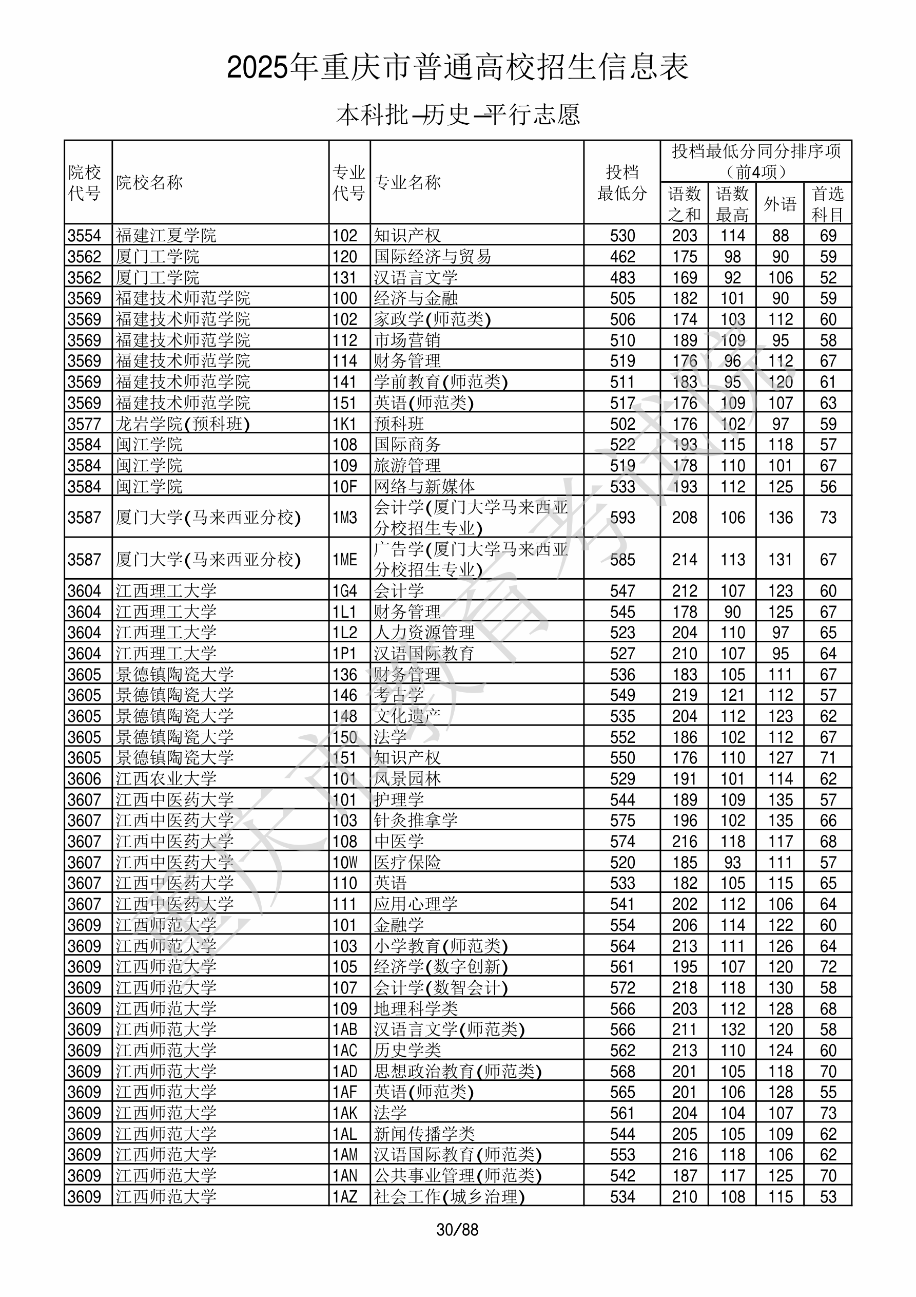 2025年重庆高考普通类本科批 厦门大学 的 广告学 专业录取分数溯源信息